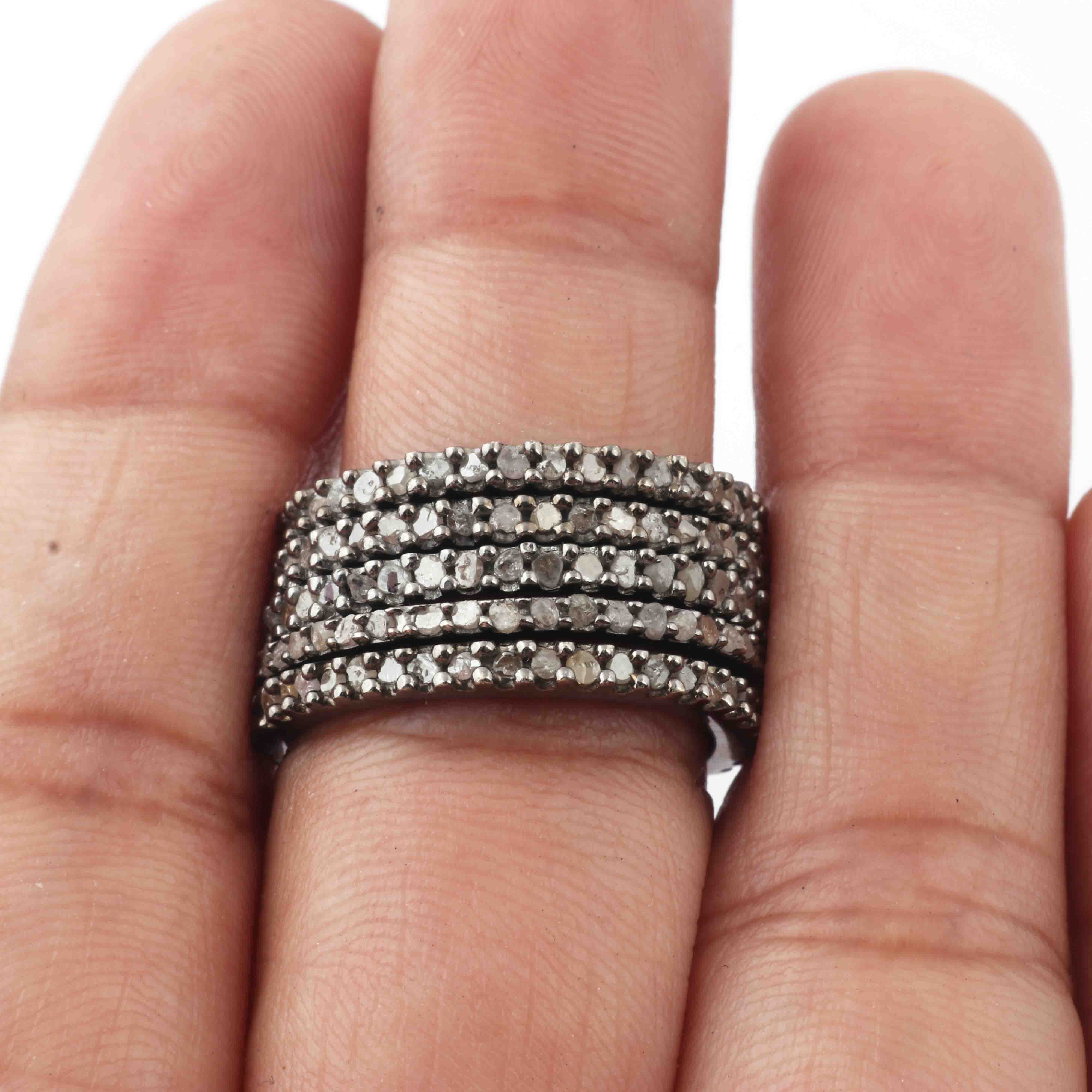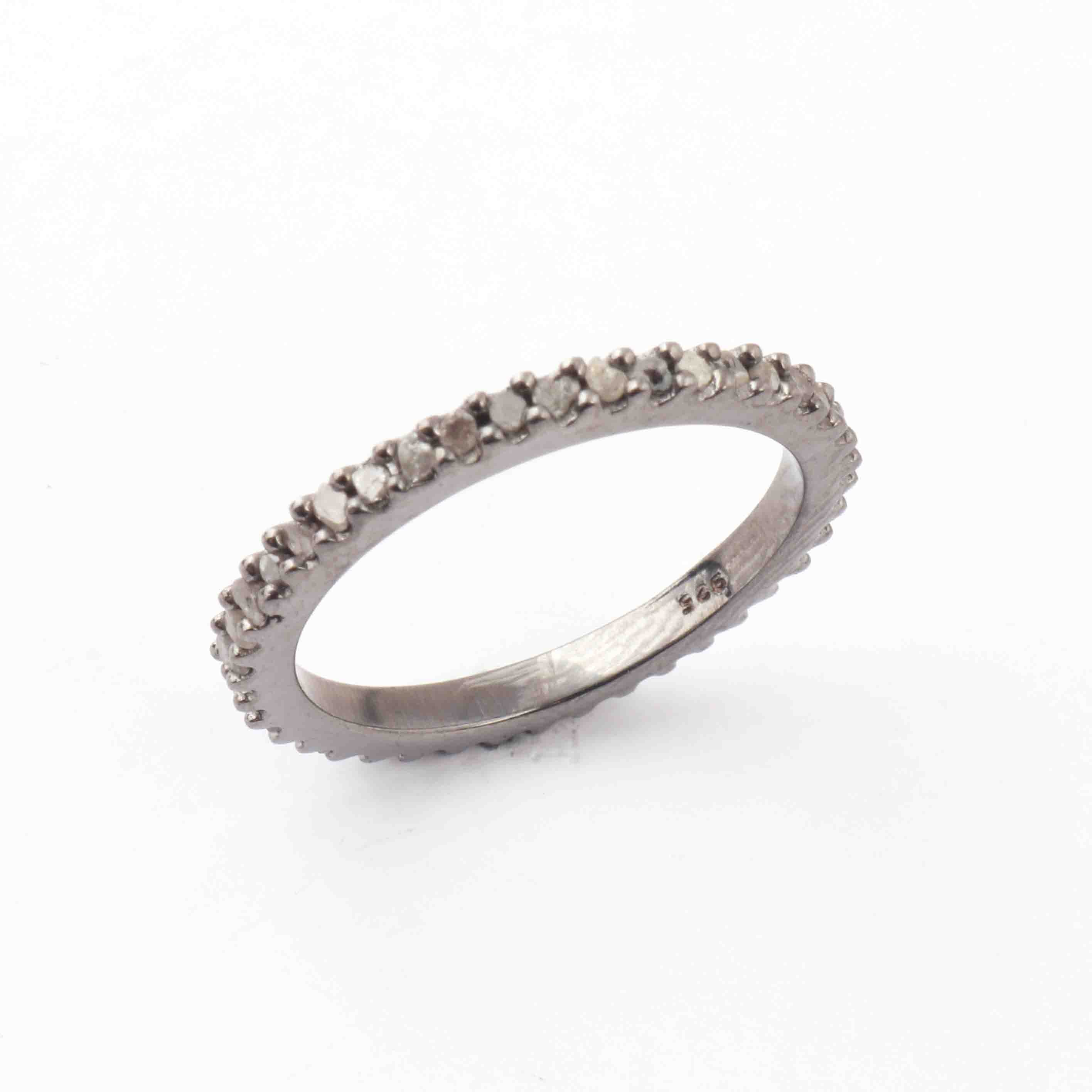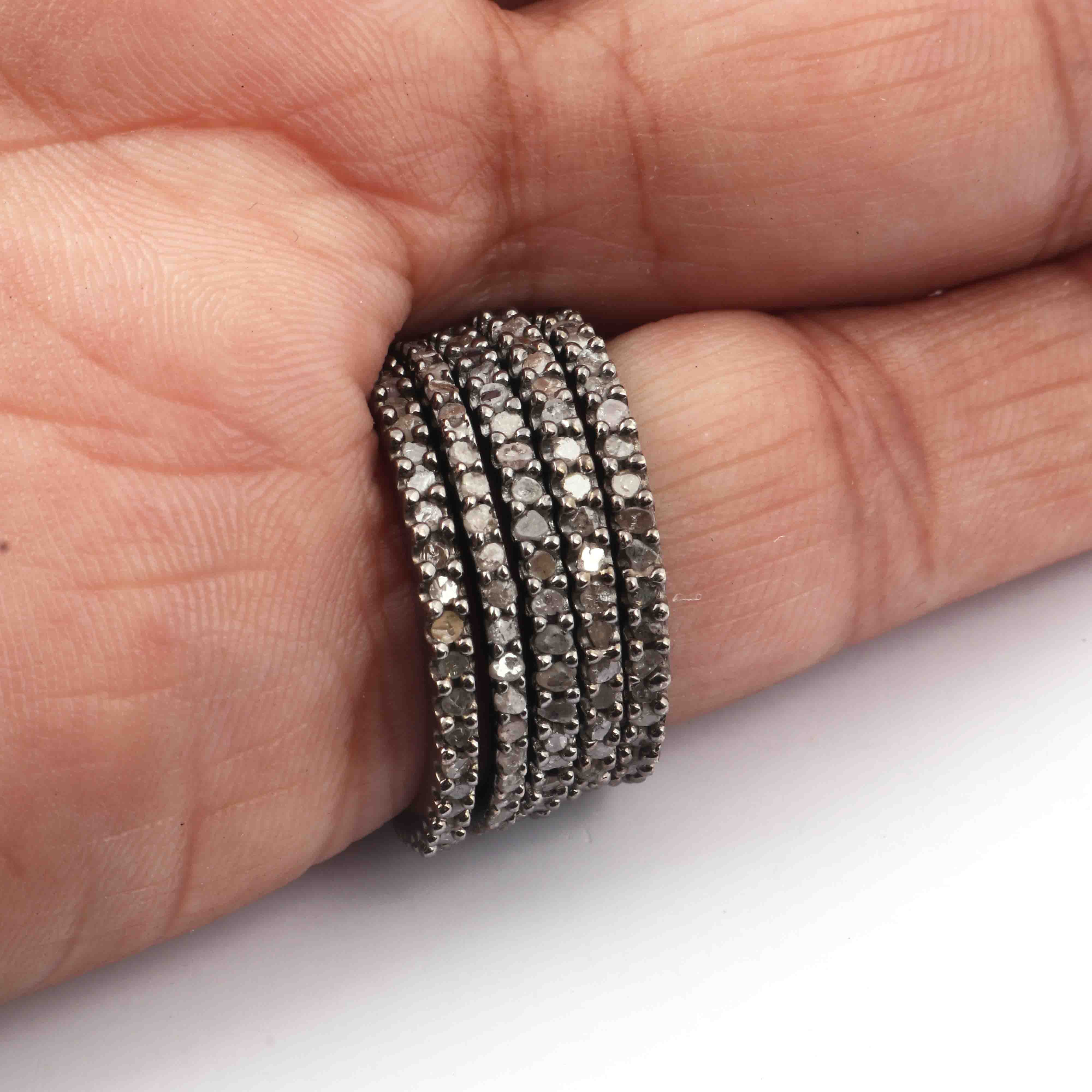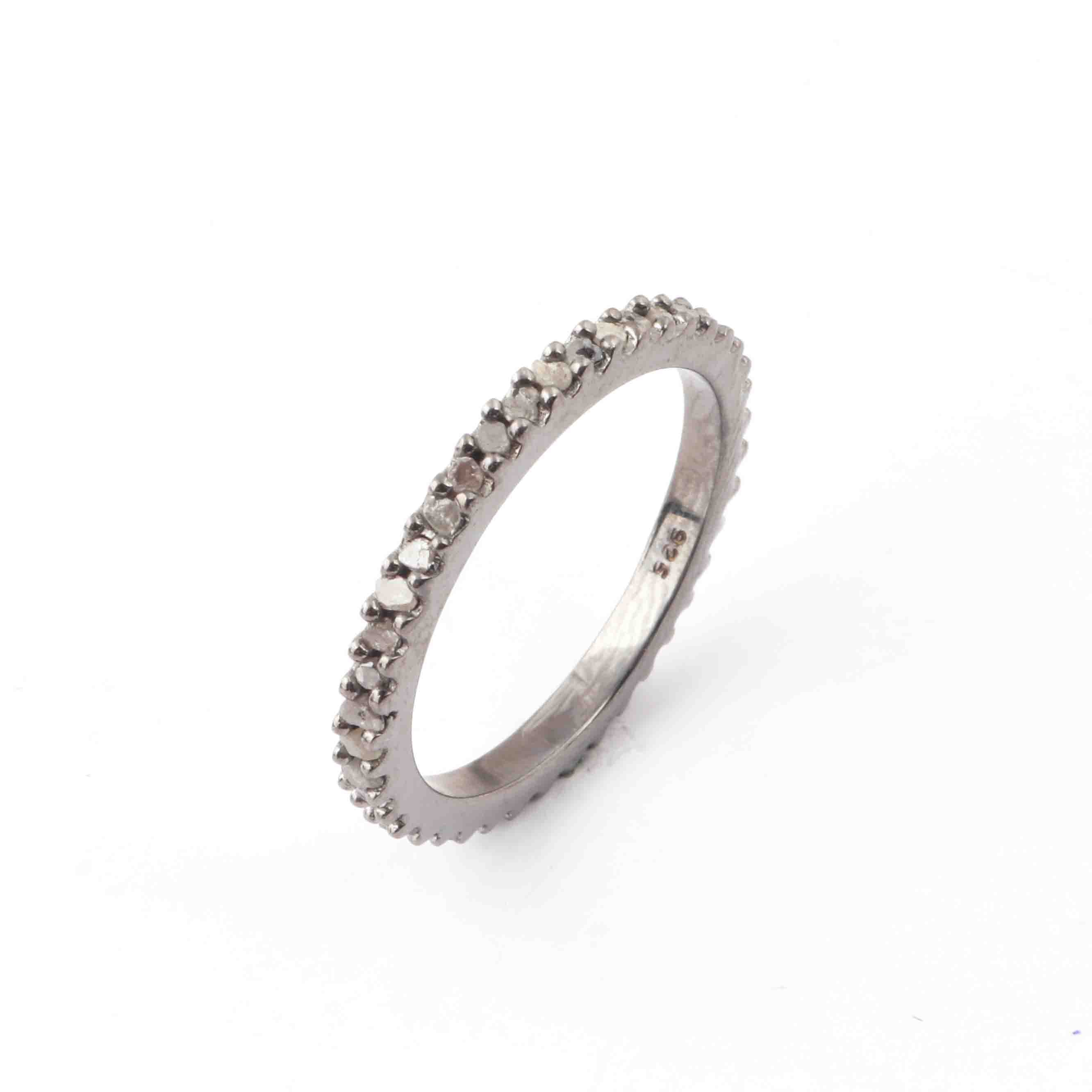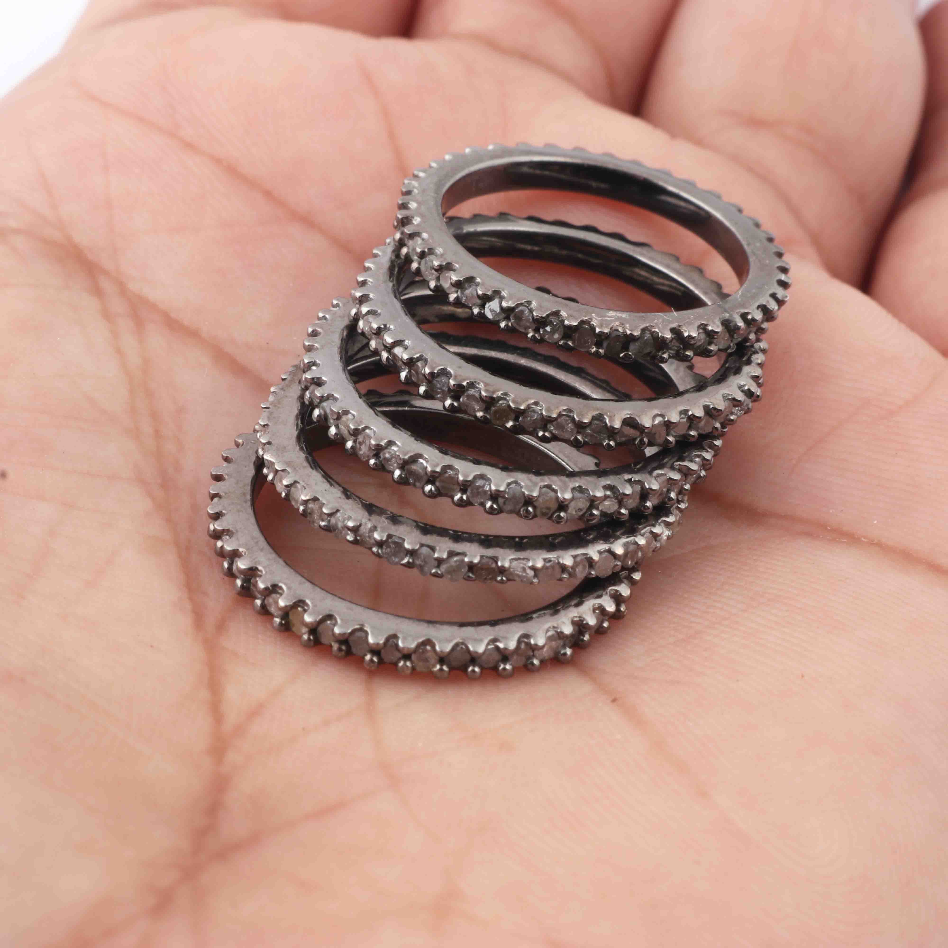 Listing Is For One (1) Pc Pave Diamond Round Band Ring- 925 Sterling Silver, Oxidized Ring- Antique Jewelry, Women Ring GVRD032