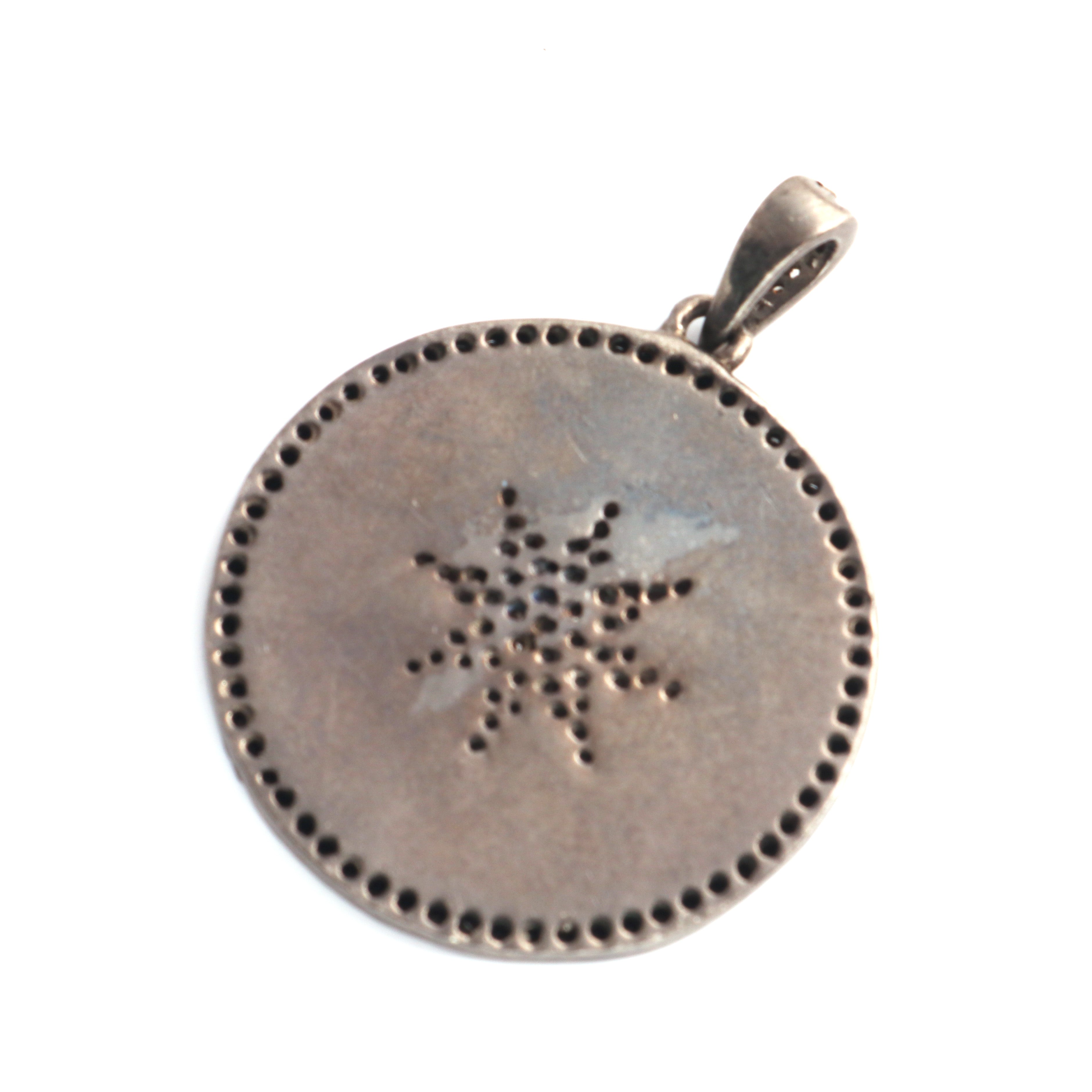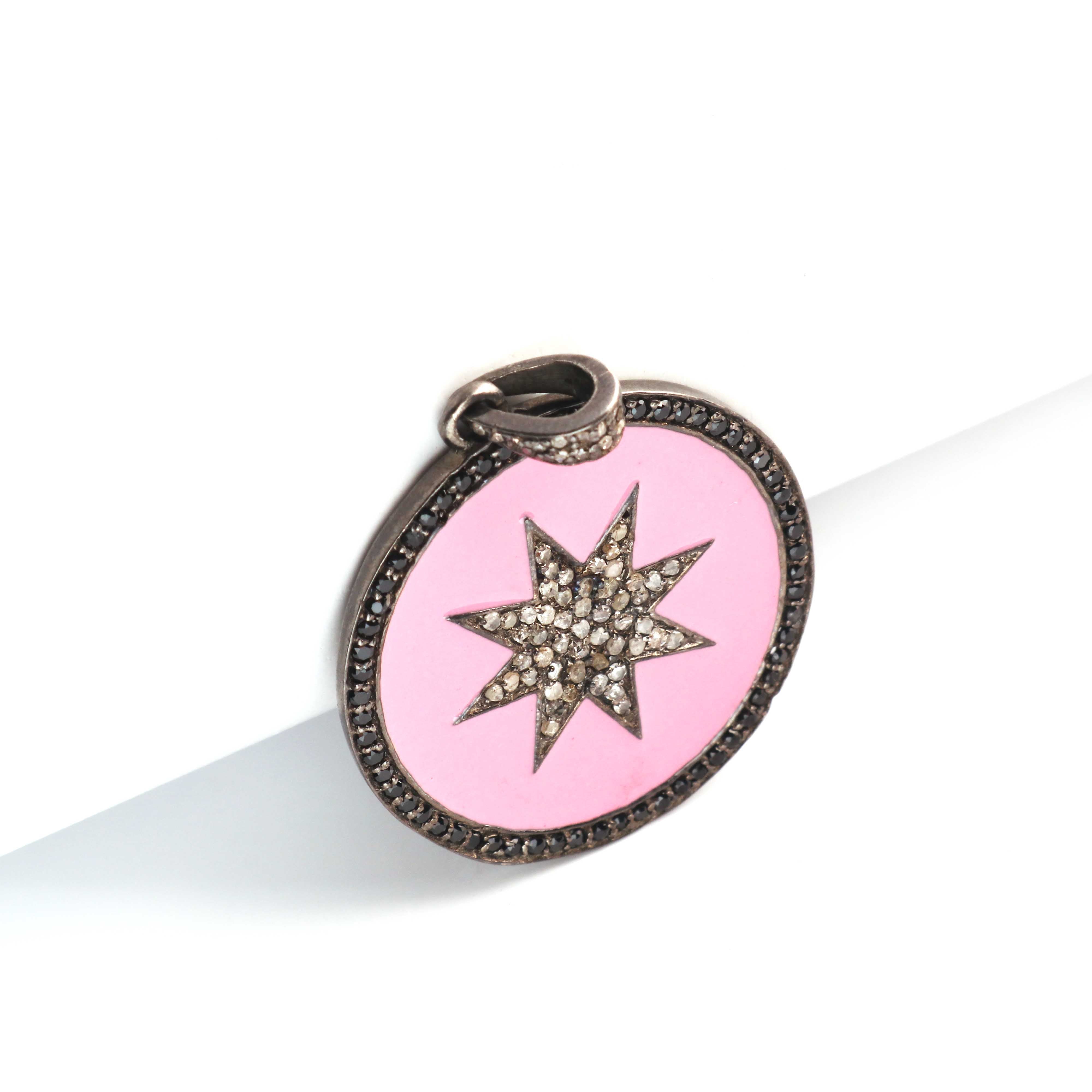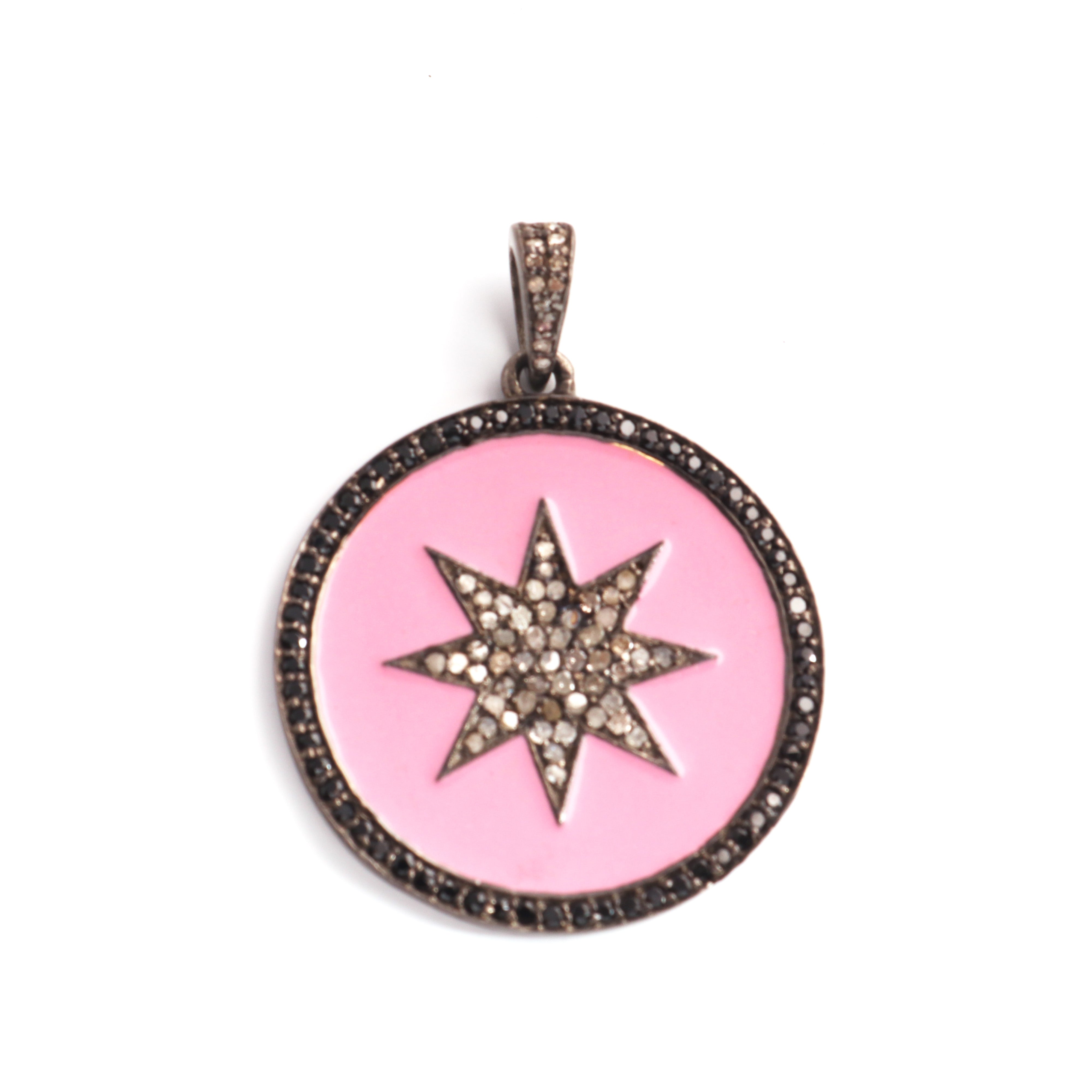 One (1) Pc Pave Diamond With Black Spinel XL Bakelite Stars With Round Shape Pendant Over 925 Sterling Silver -Bakelite Star Pendant PD688