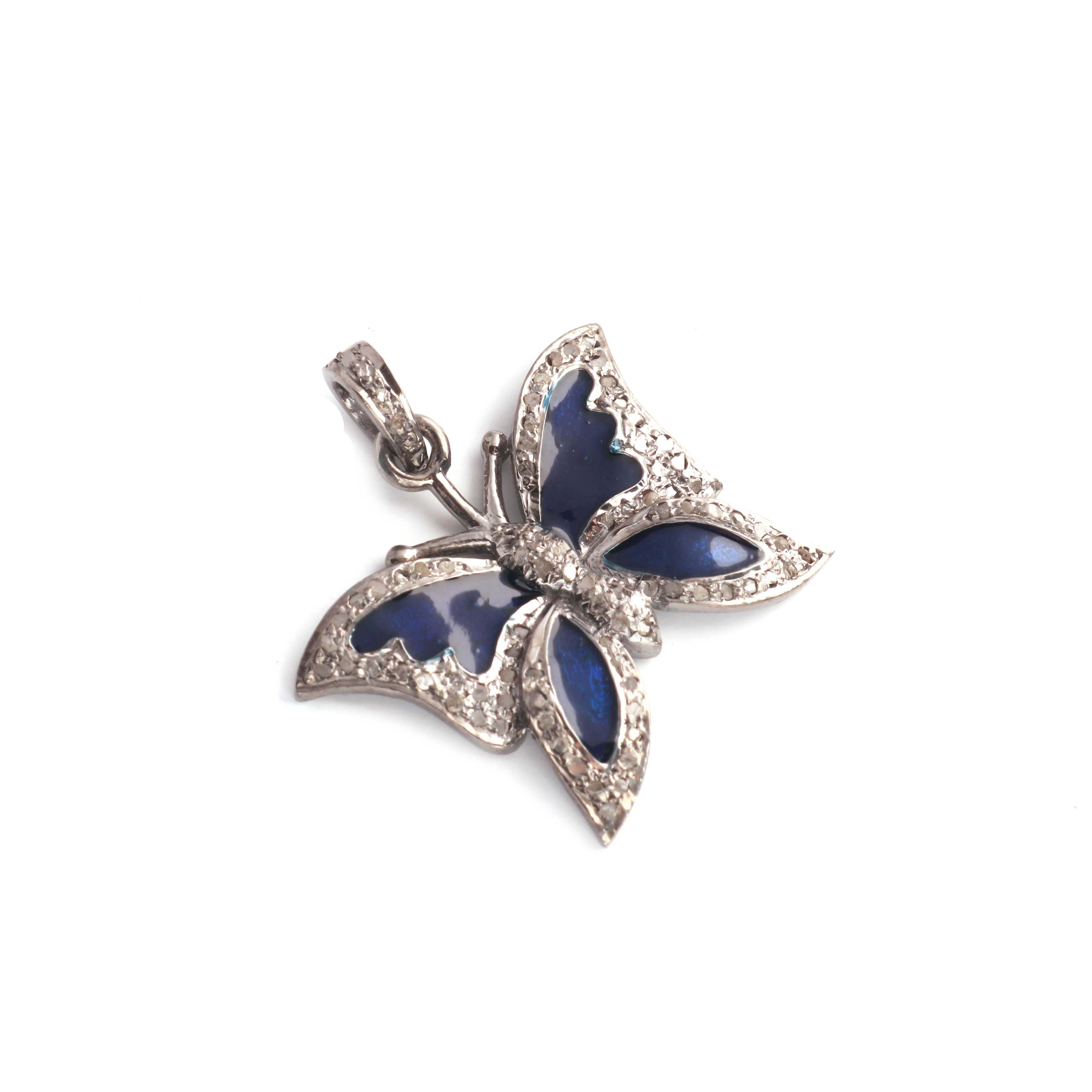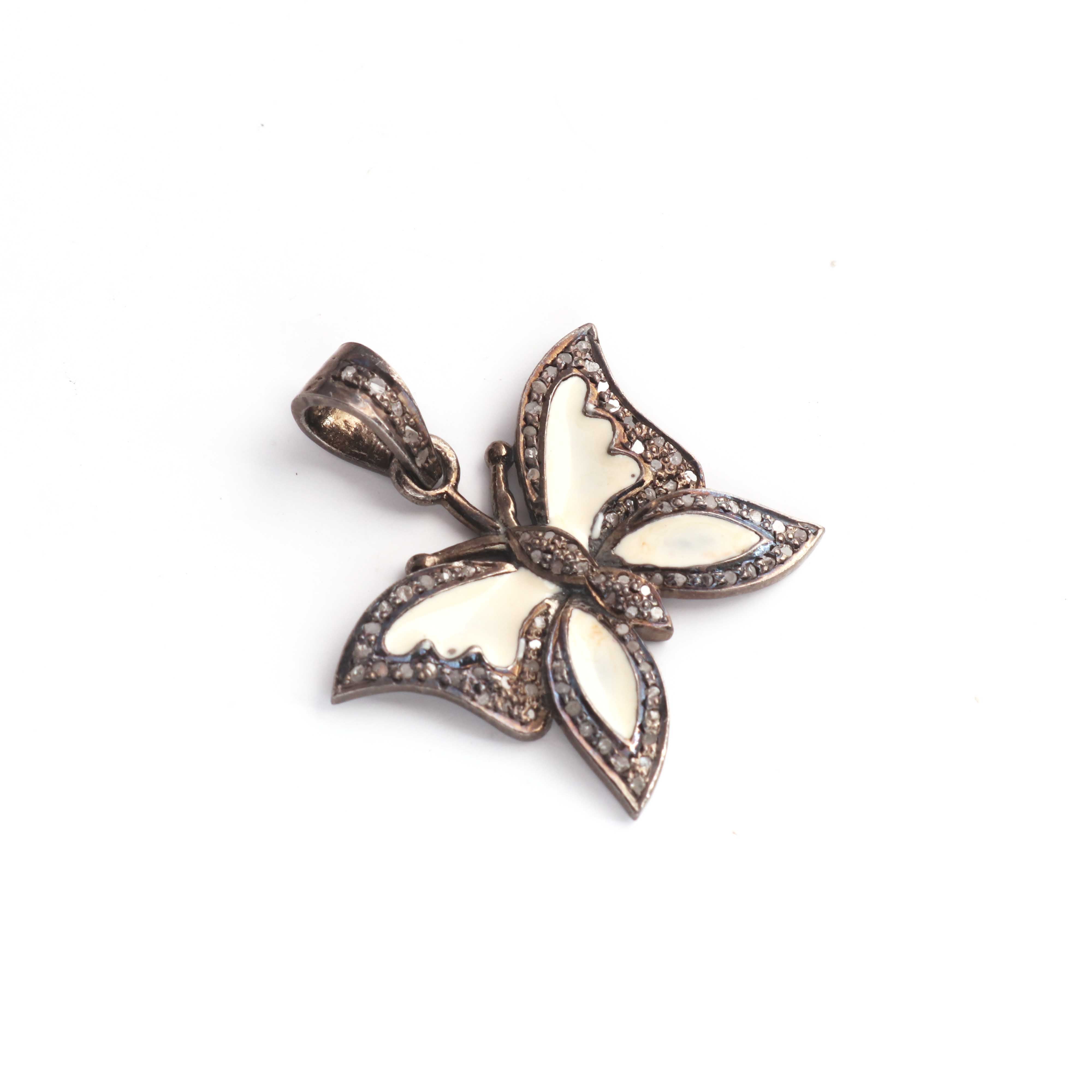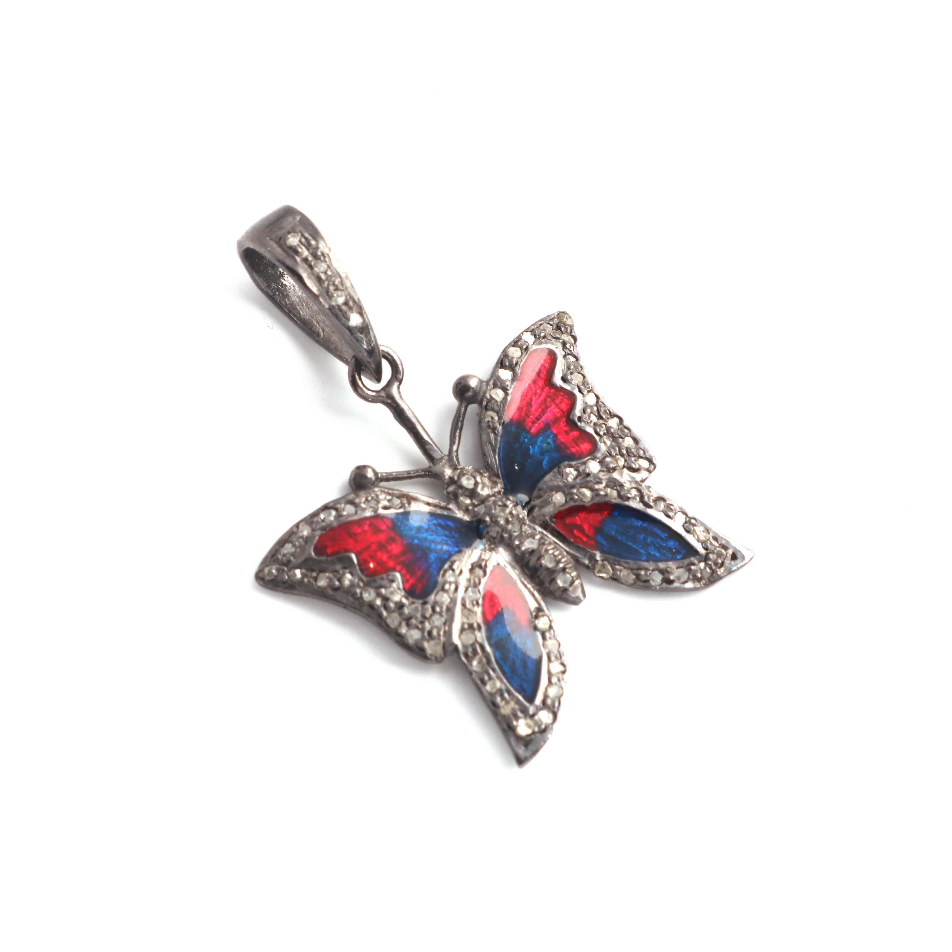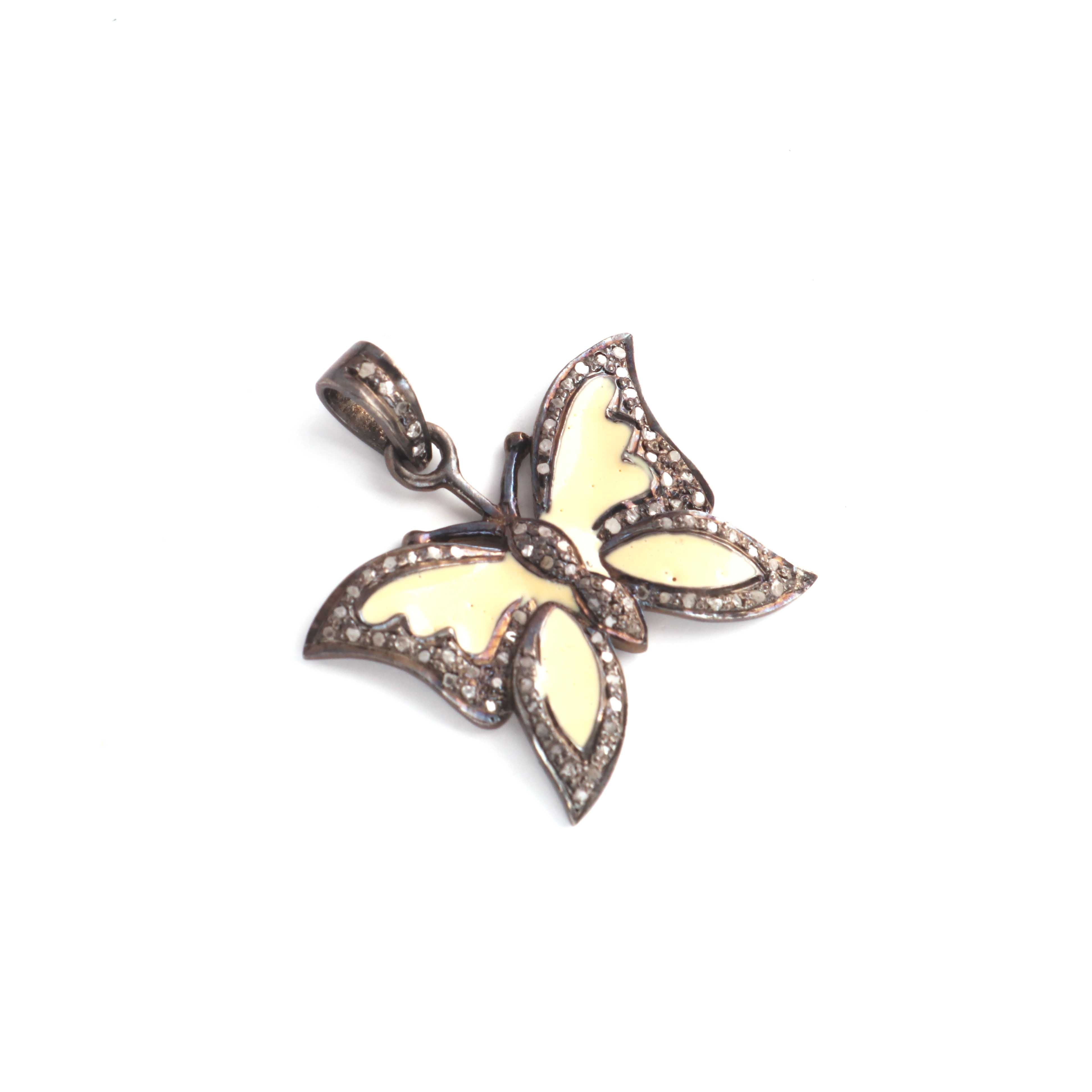 Listing is For One (1) Pc Pave Diamond Bakelite-Enamel Butterfly Pendant - 925 Sterling Silver & Vermeil (You Choose) PD708