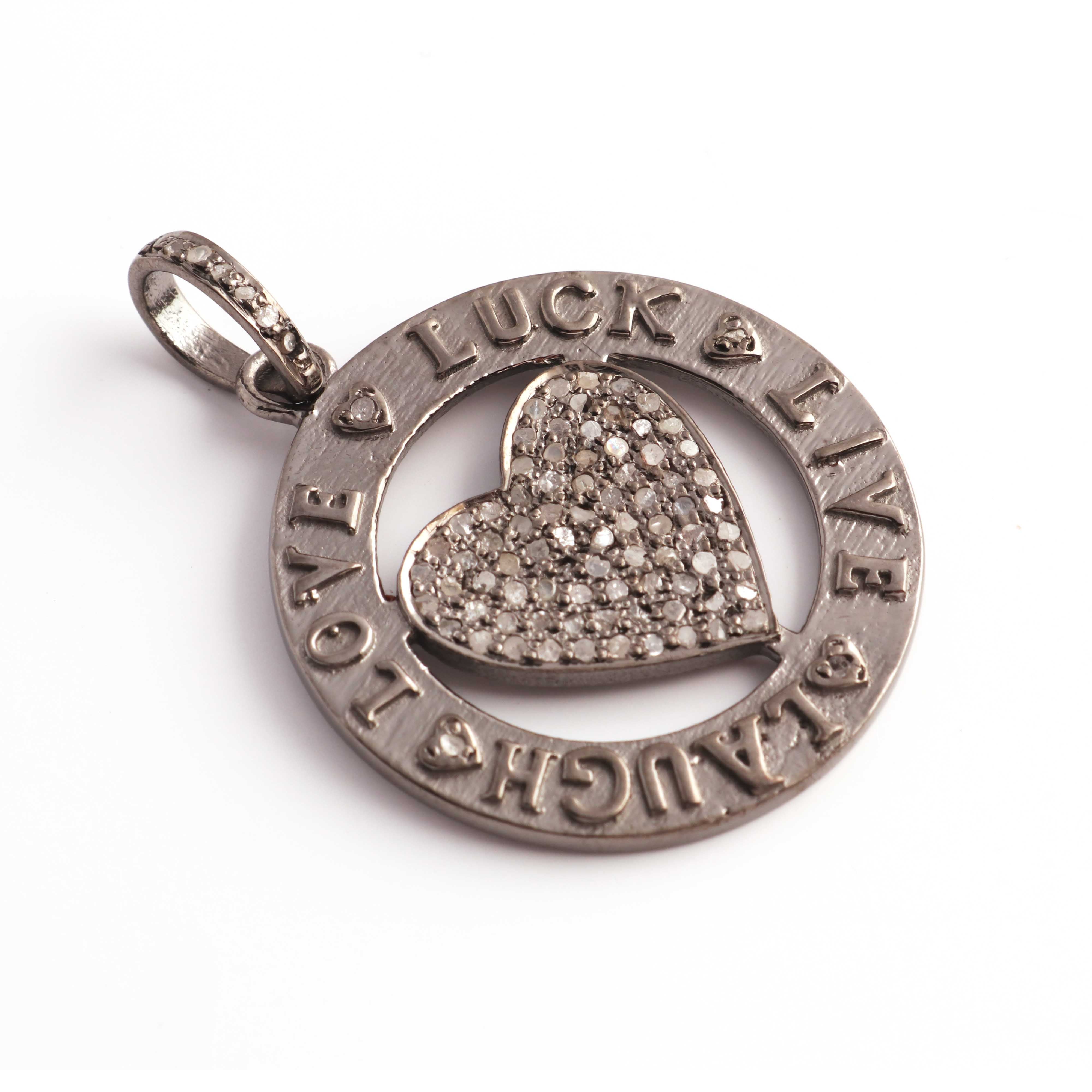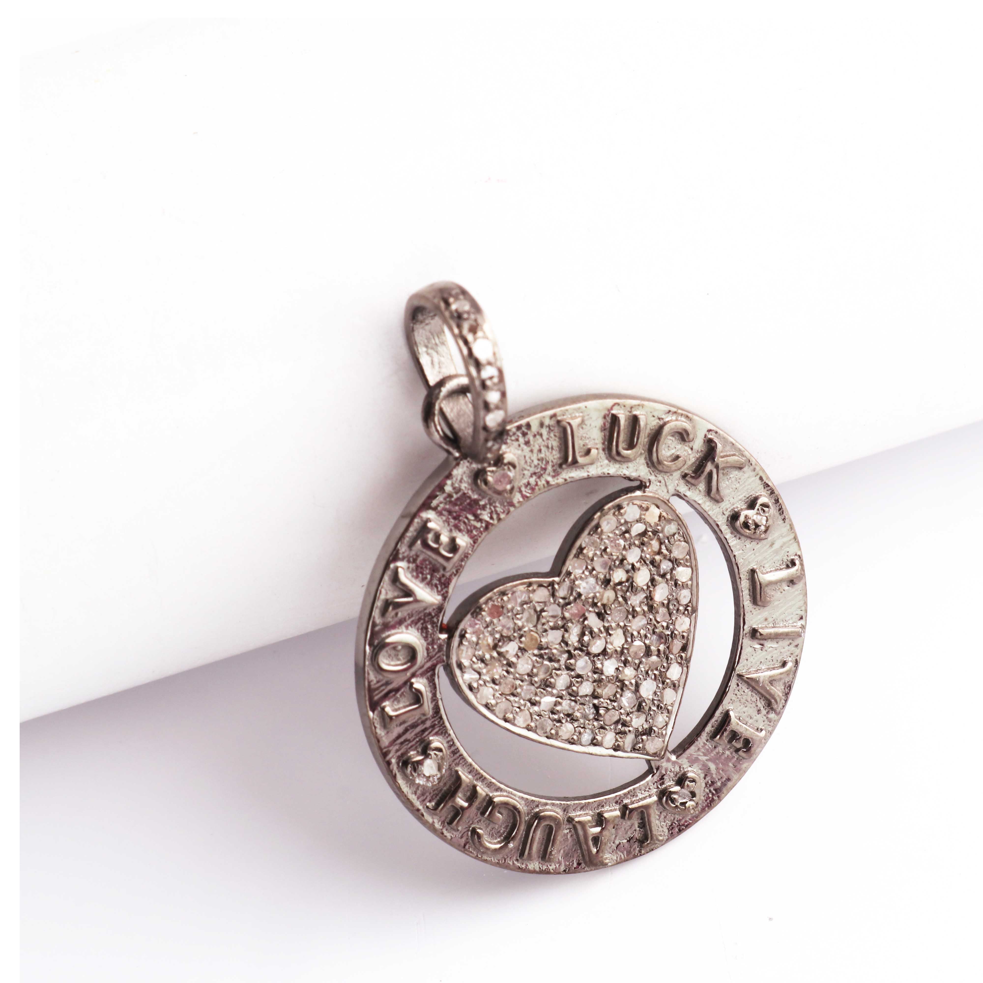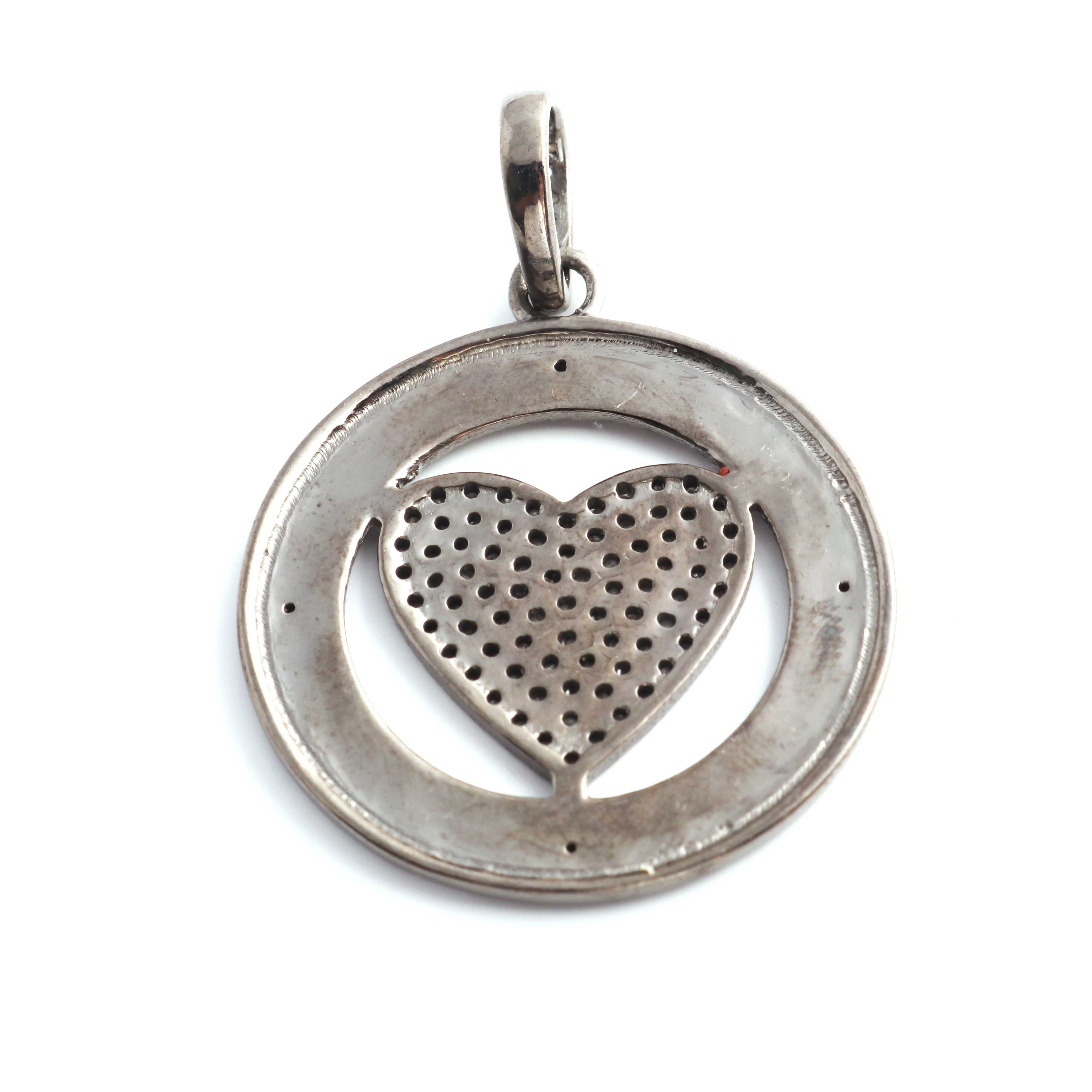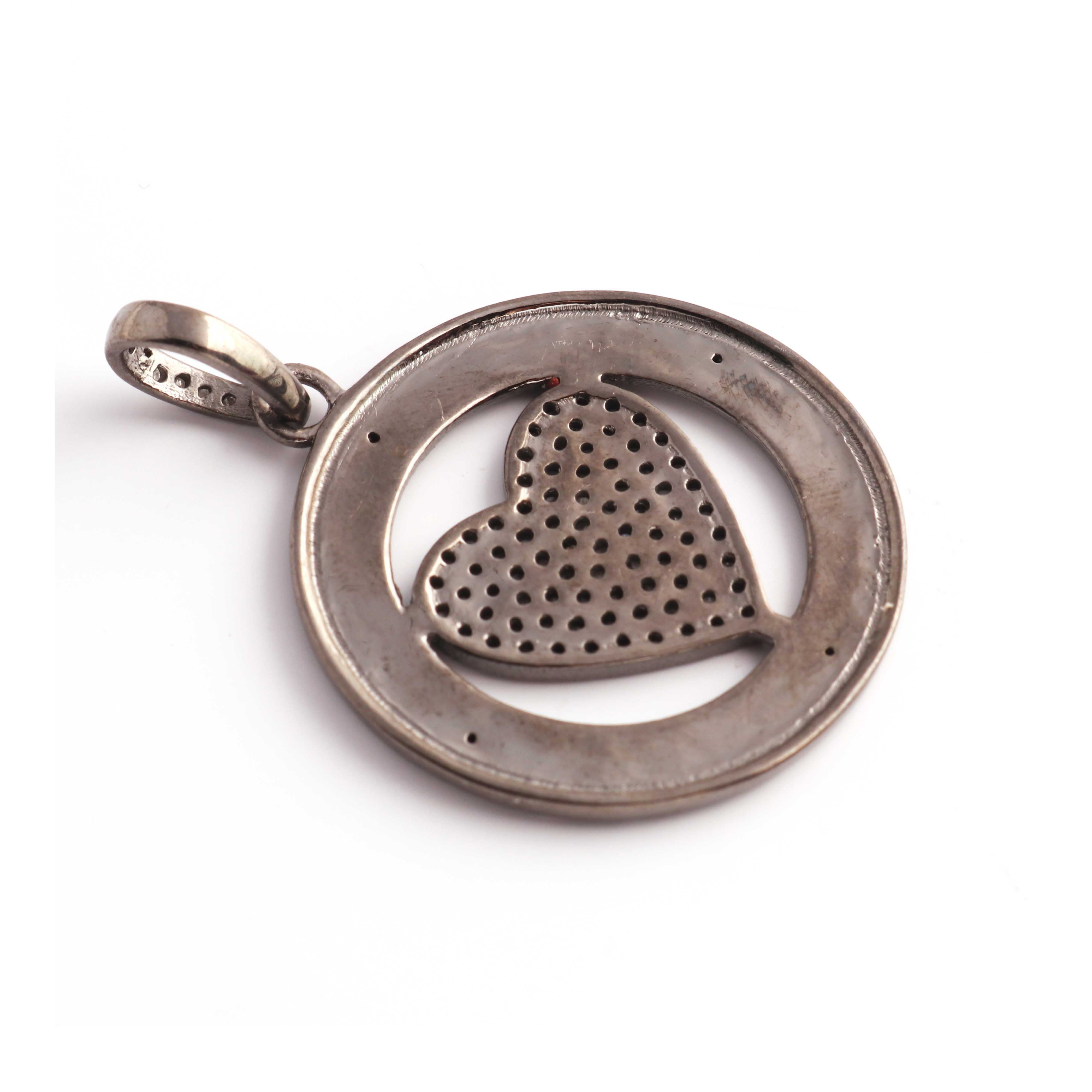 Listing Is For One (1) Pc Antique Finish Pave Diamond Round With Heart Pendant - 925 Sterling Silver- Love Necklace Pendant PD1323