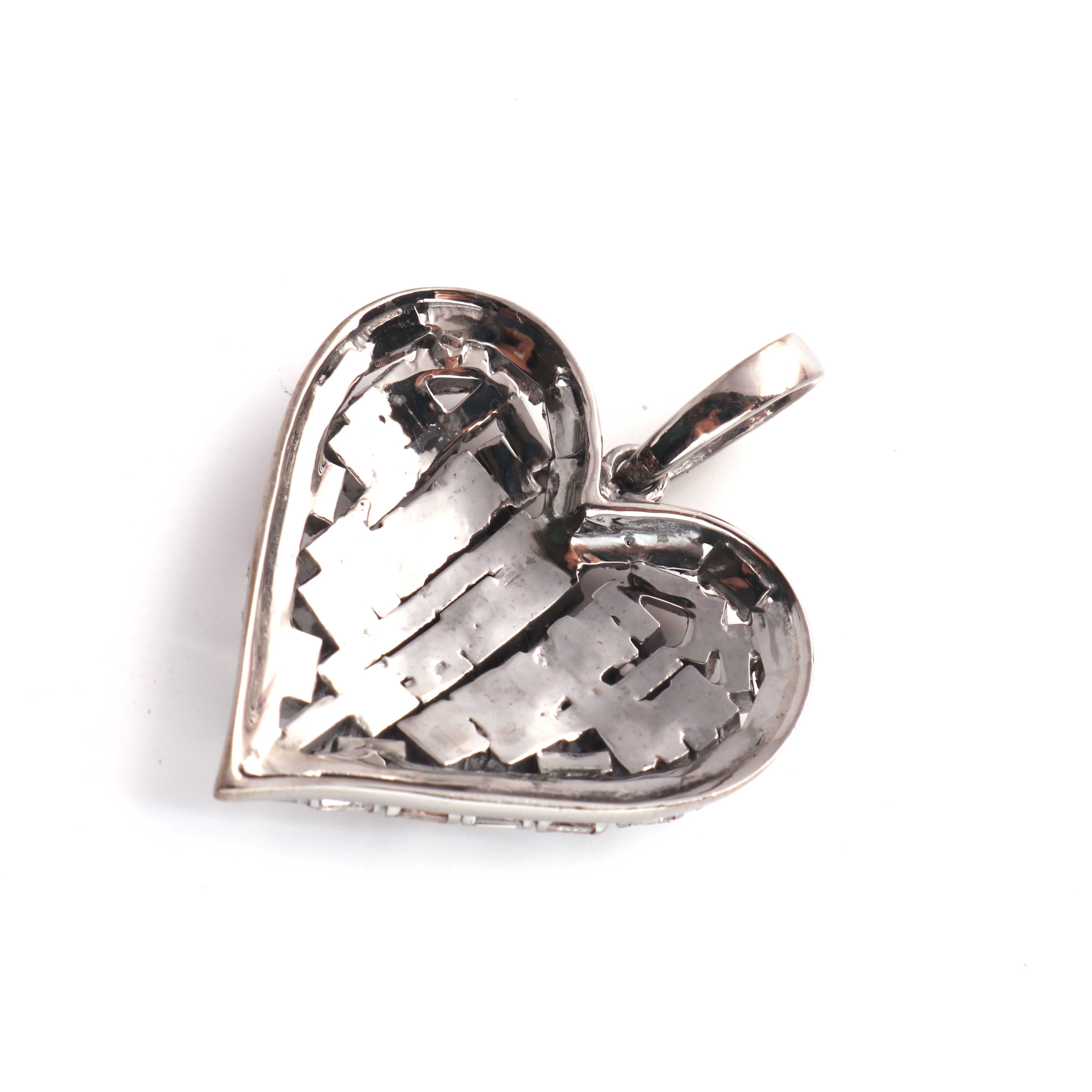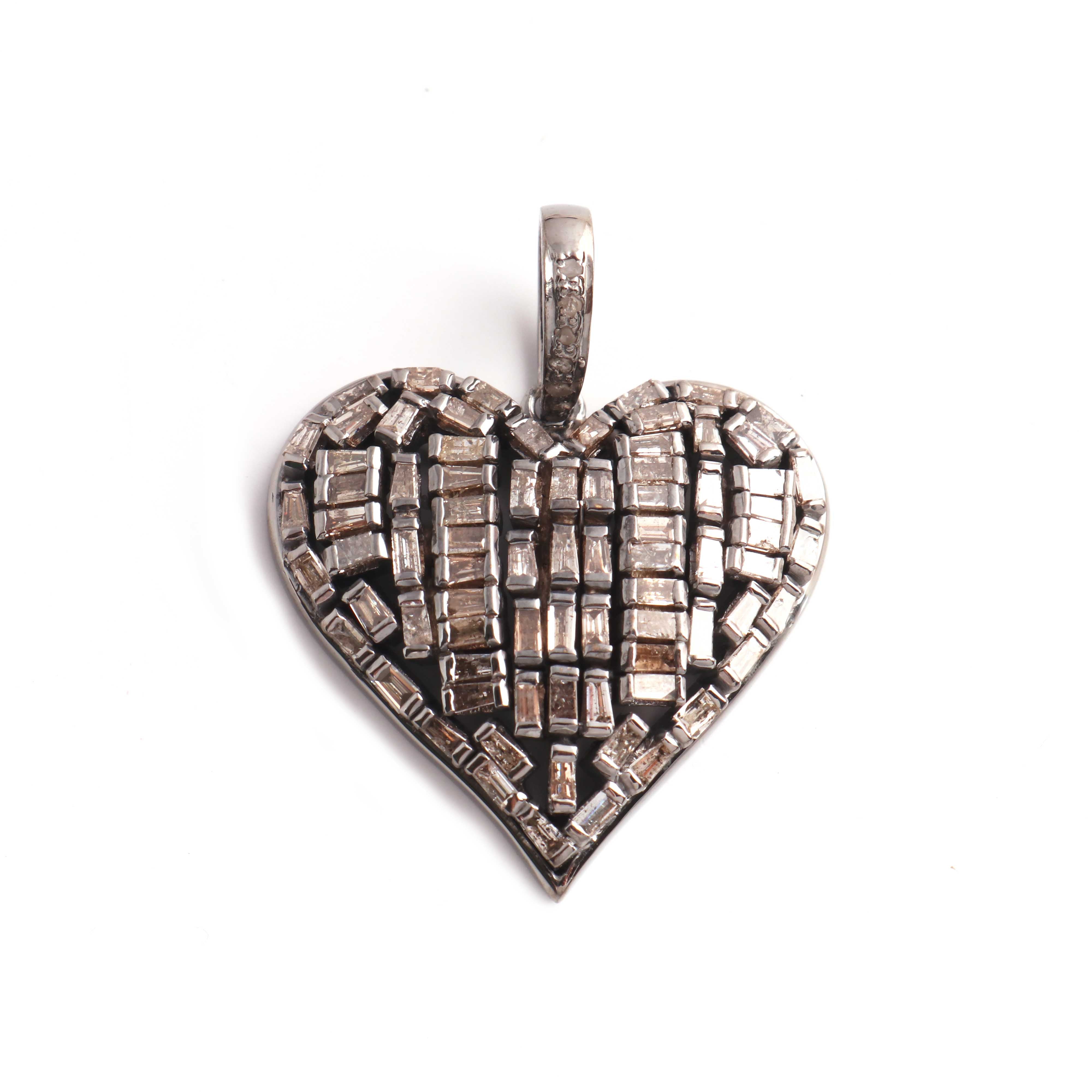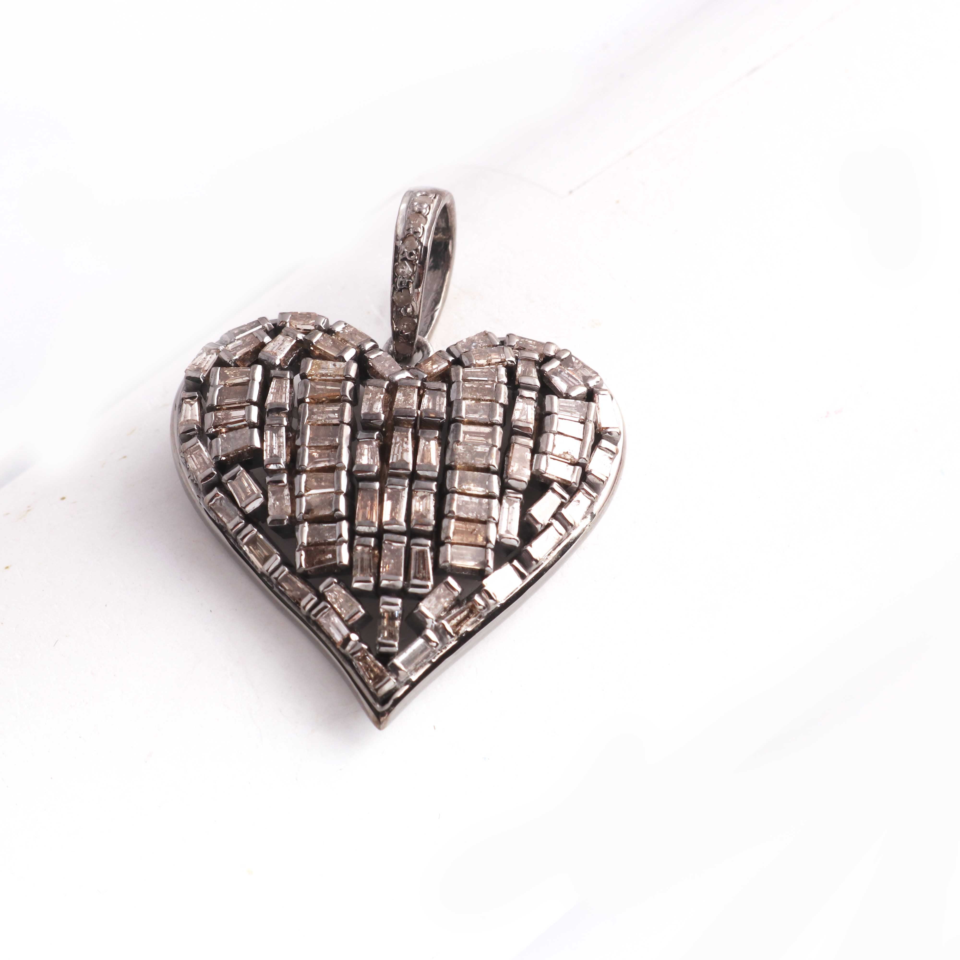 Listing Is For One (1) PC Genuine Pave Diamond With Baguette Diamond Heart Pendant - 925 Sterling Silver - Heart Pendant PD630