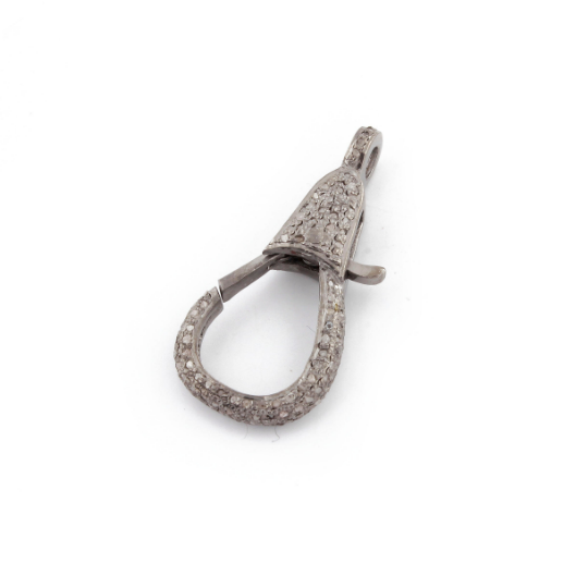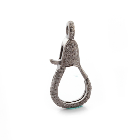 1 Pc Pave Diamond Lobster Clasp Oxidized Sterling Silver - With Diamond On Both Sides 31mmx14mm LB032