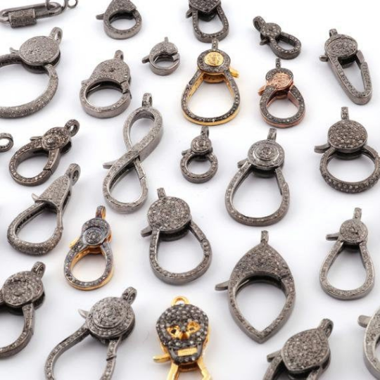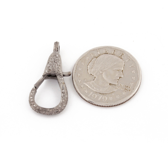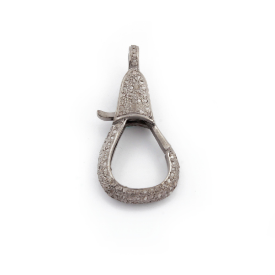 One (1) Pc Beautiful Pave Diamond Lobster Clasp Antique Finish Over Sterling Silver- Lobster Clasp With Diamond On Both Sides 31mmx14mm LB032