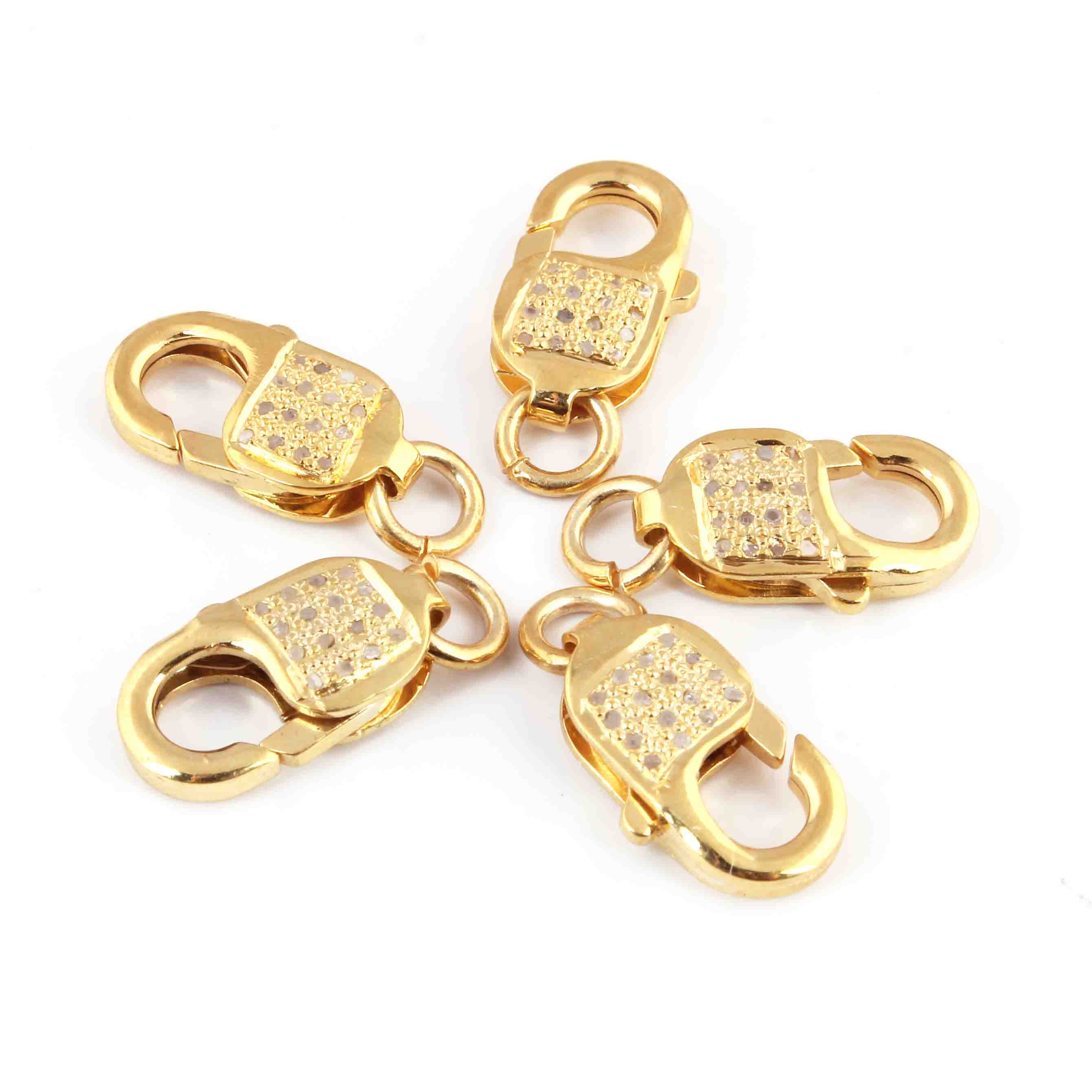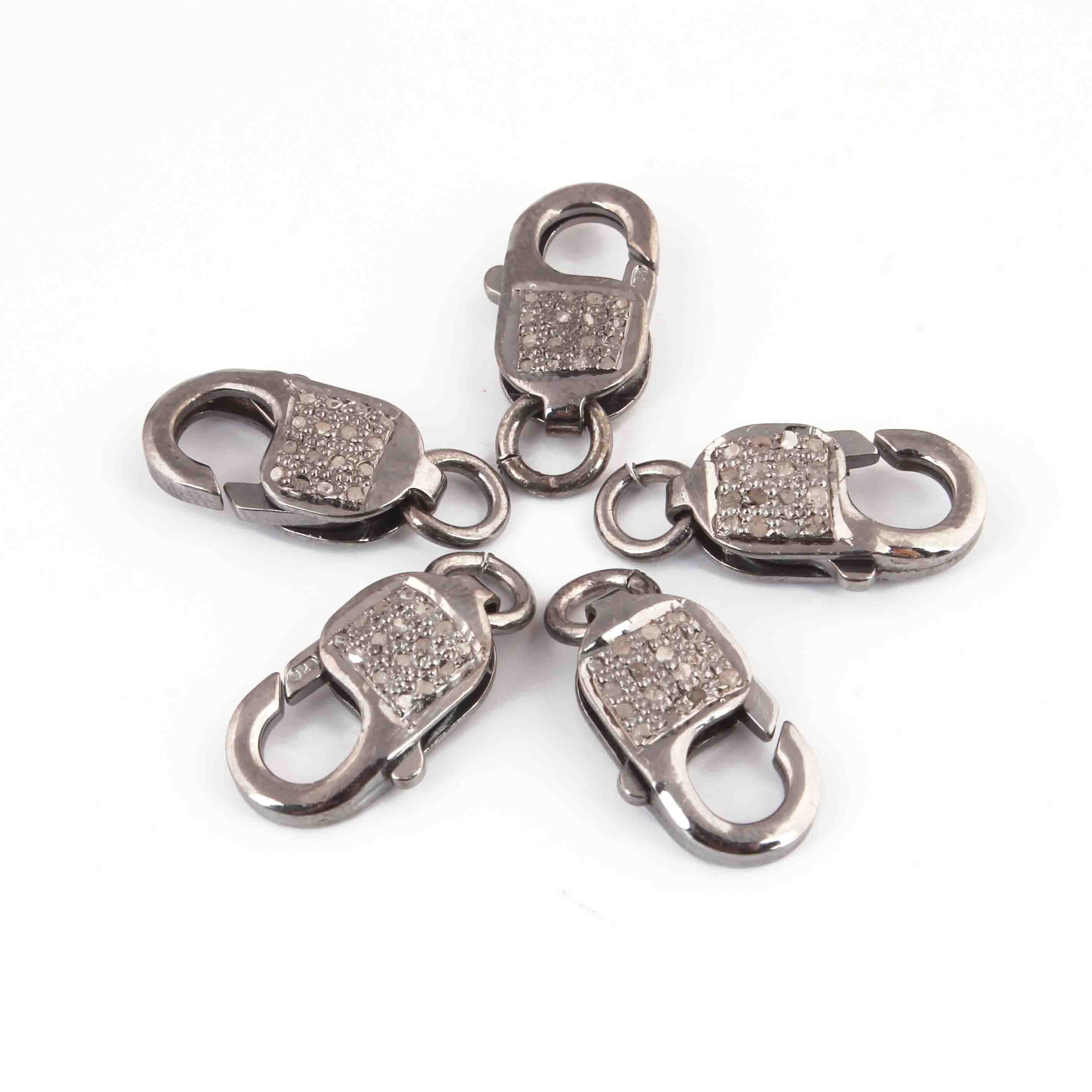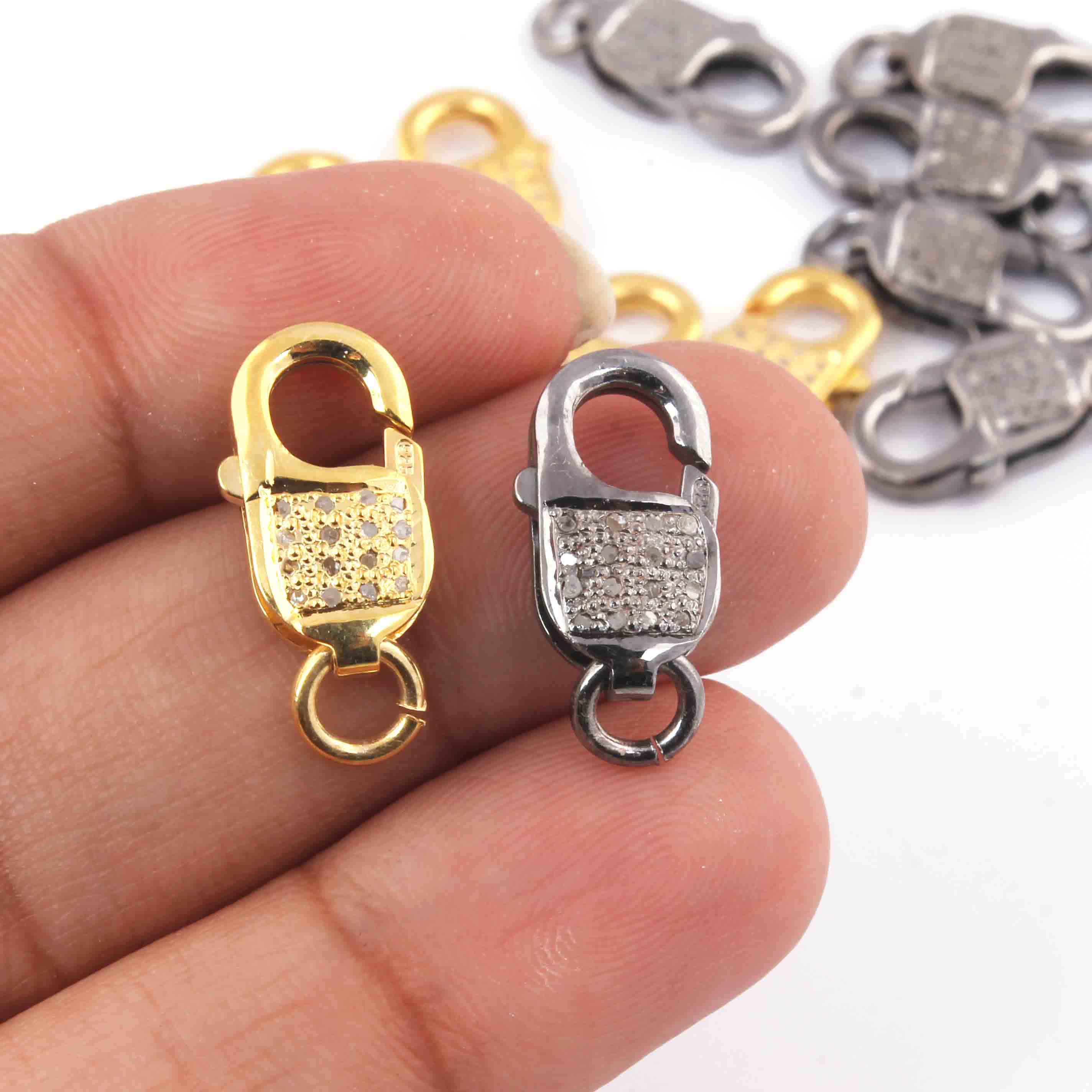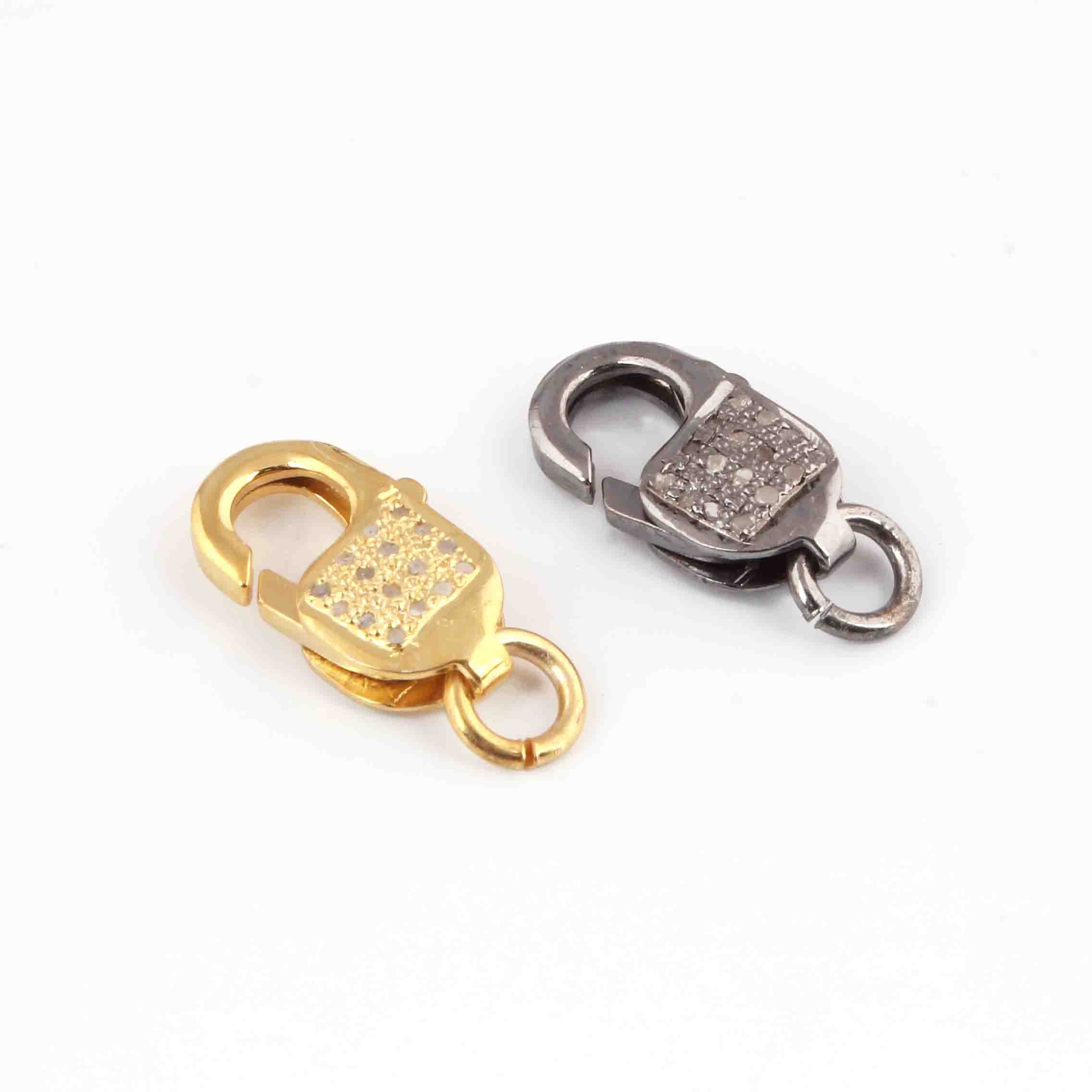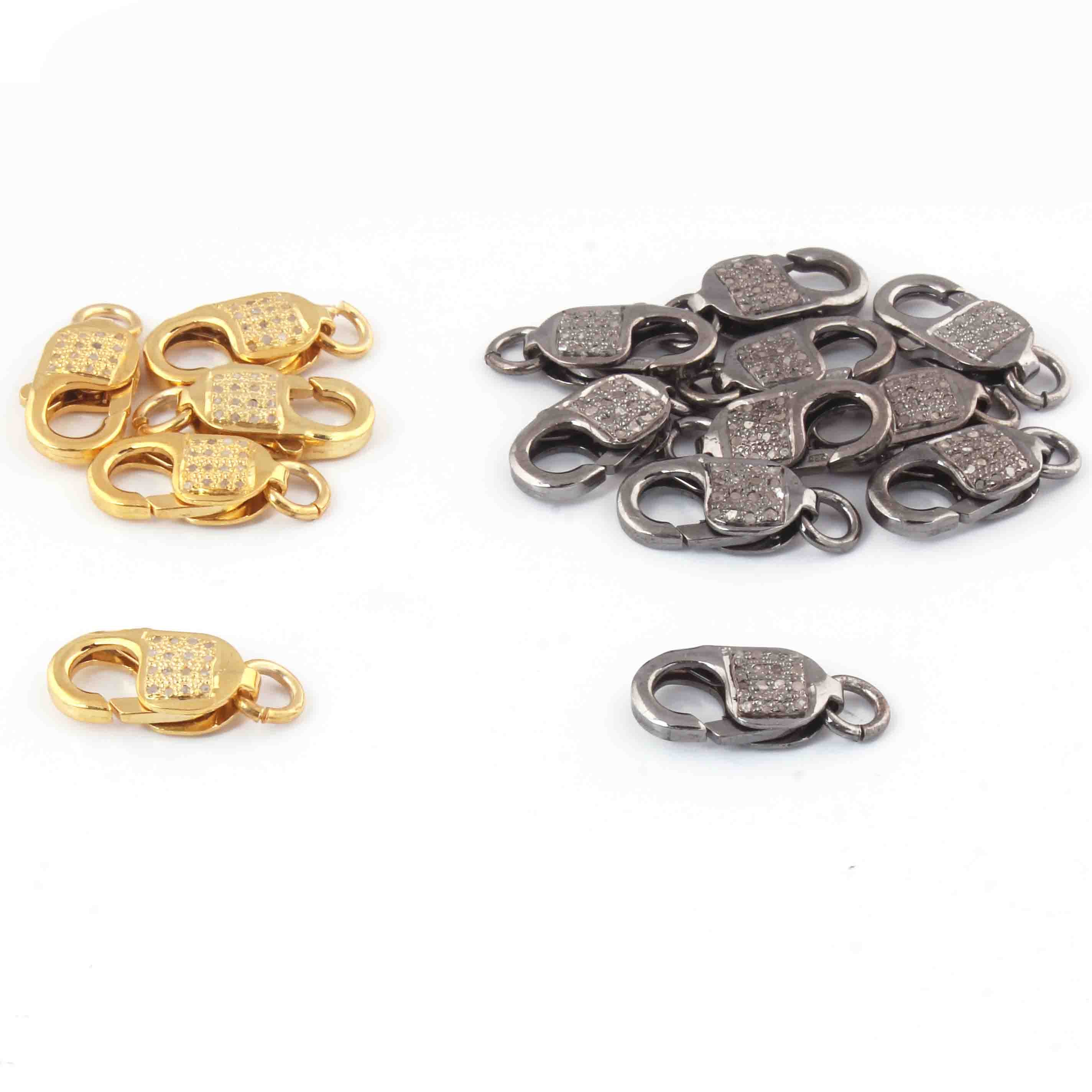 ONE (1) PC Antique Finish Pave Diamond Lobsters Over 925 Sterling Silver / Yellow Gold - Double Sided Diamond Clasp 16mmx8mm LB294