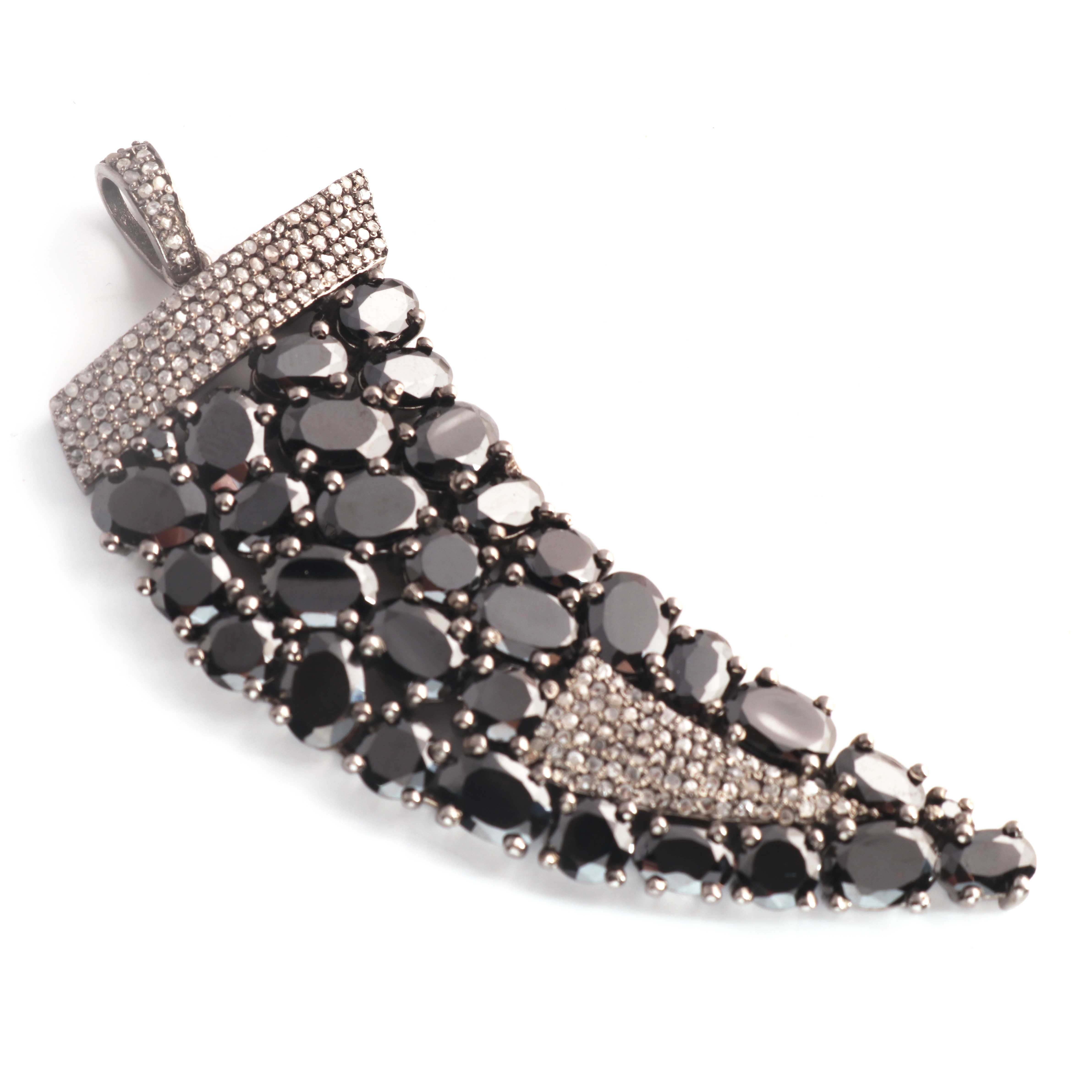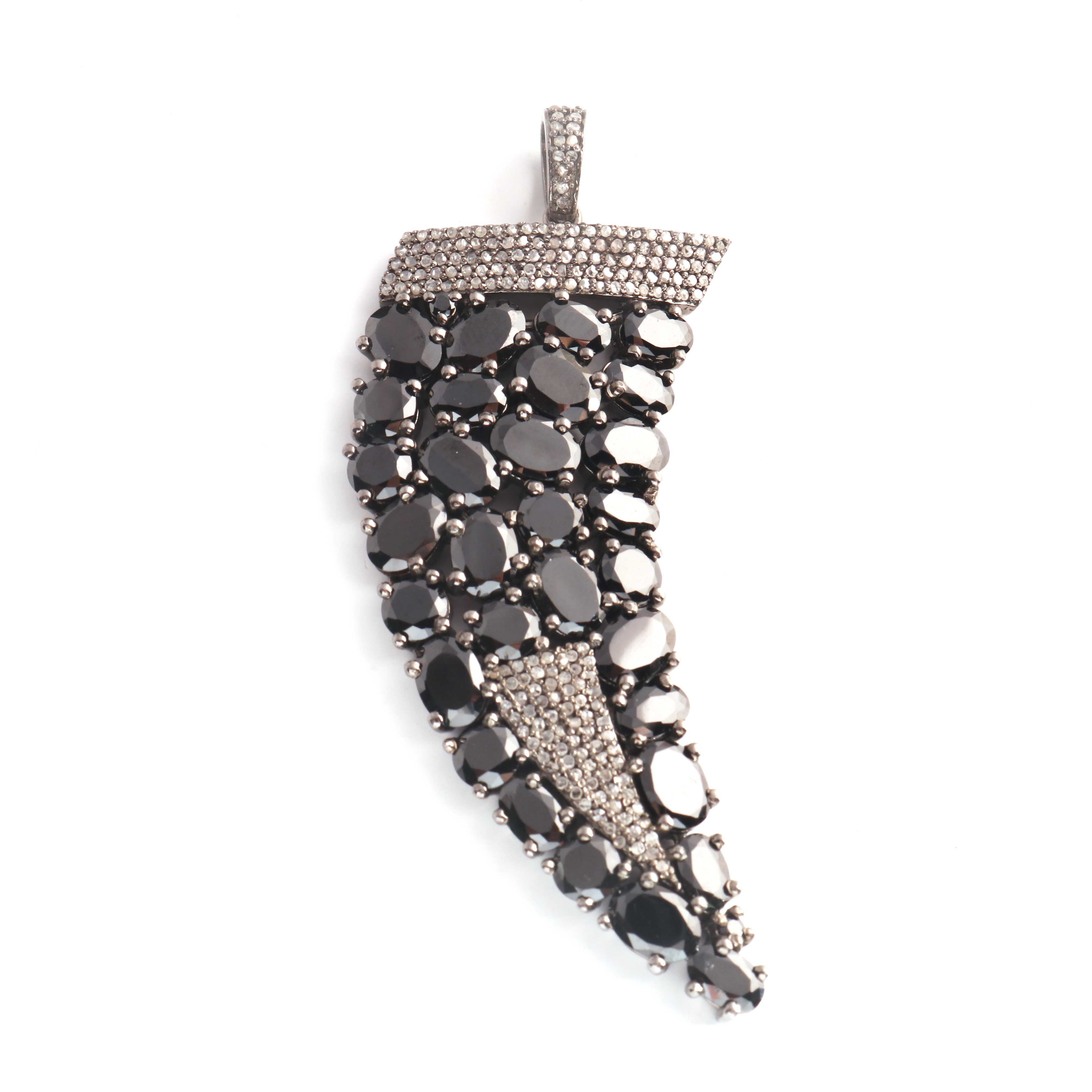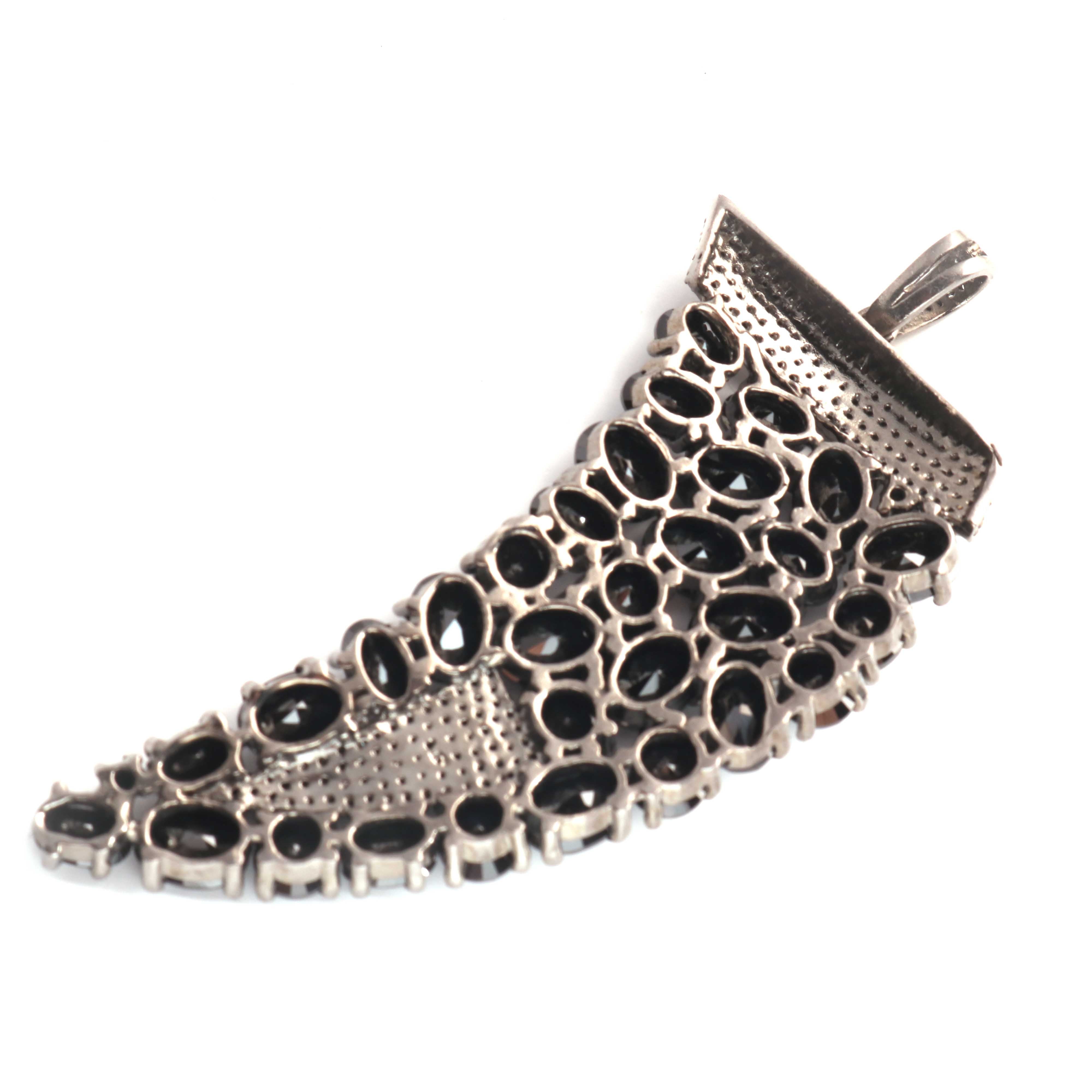 1 PC Pave Diamond Genuine Black Onyx Horn Pendant -925 Sterling Silver -Necklace Pendant 65mmx25mm PD511