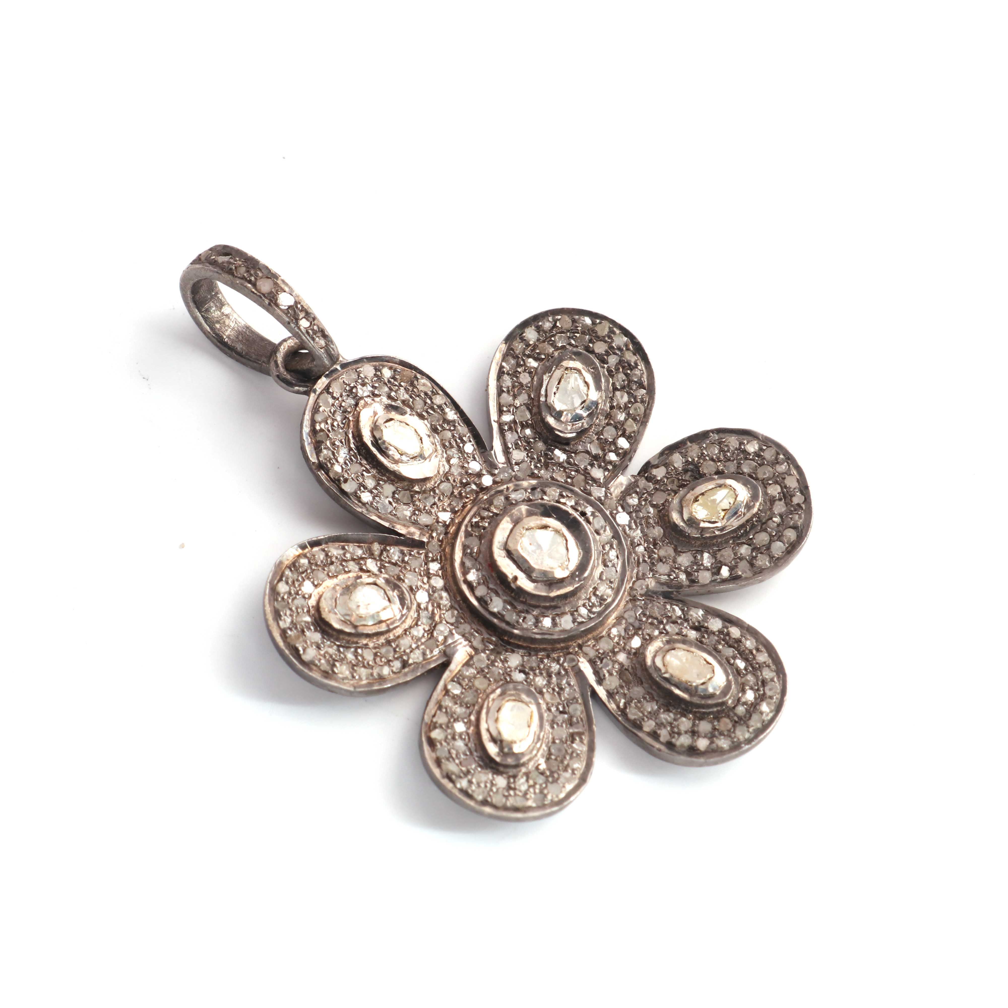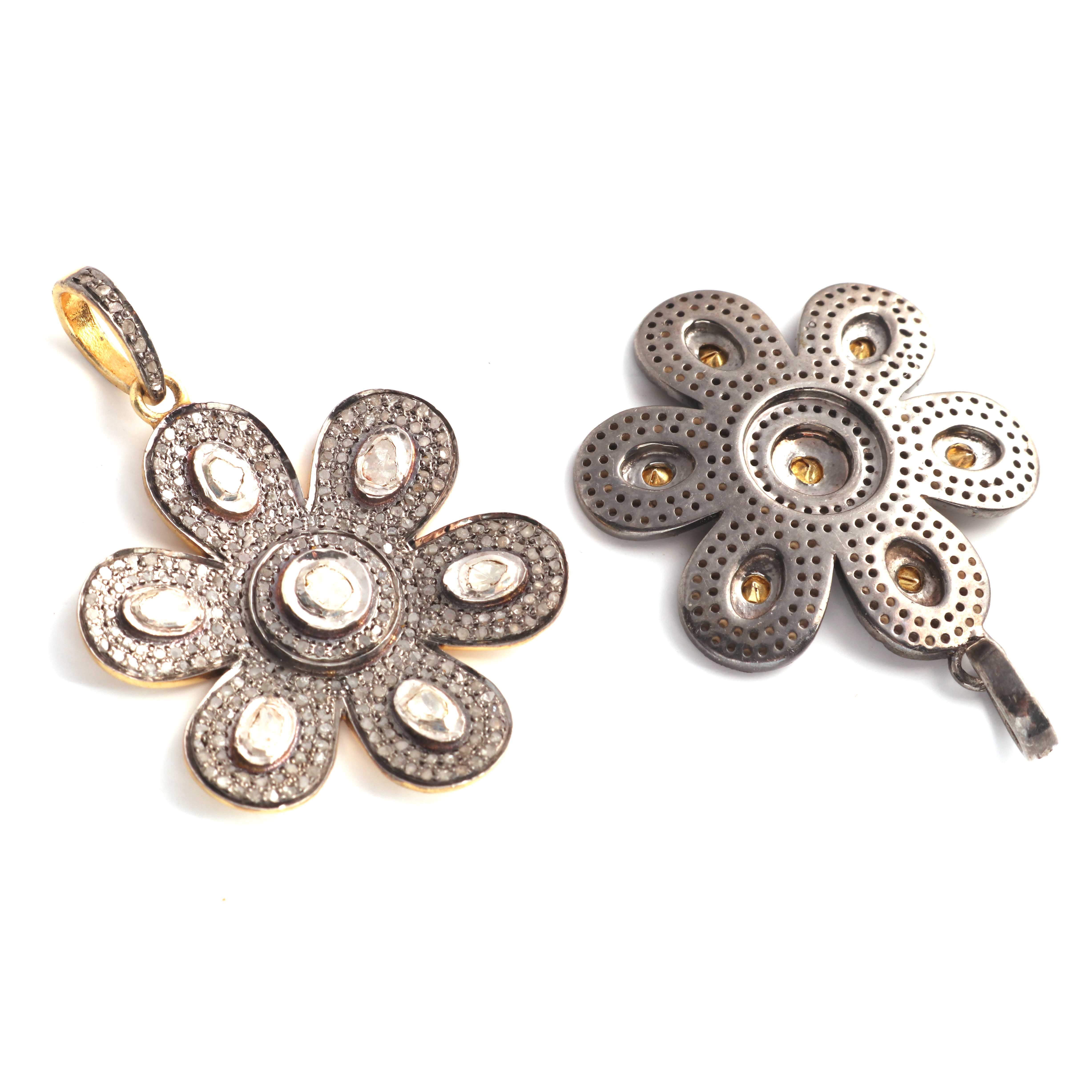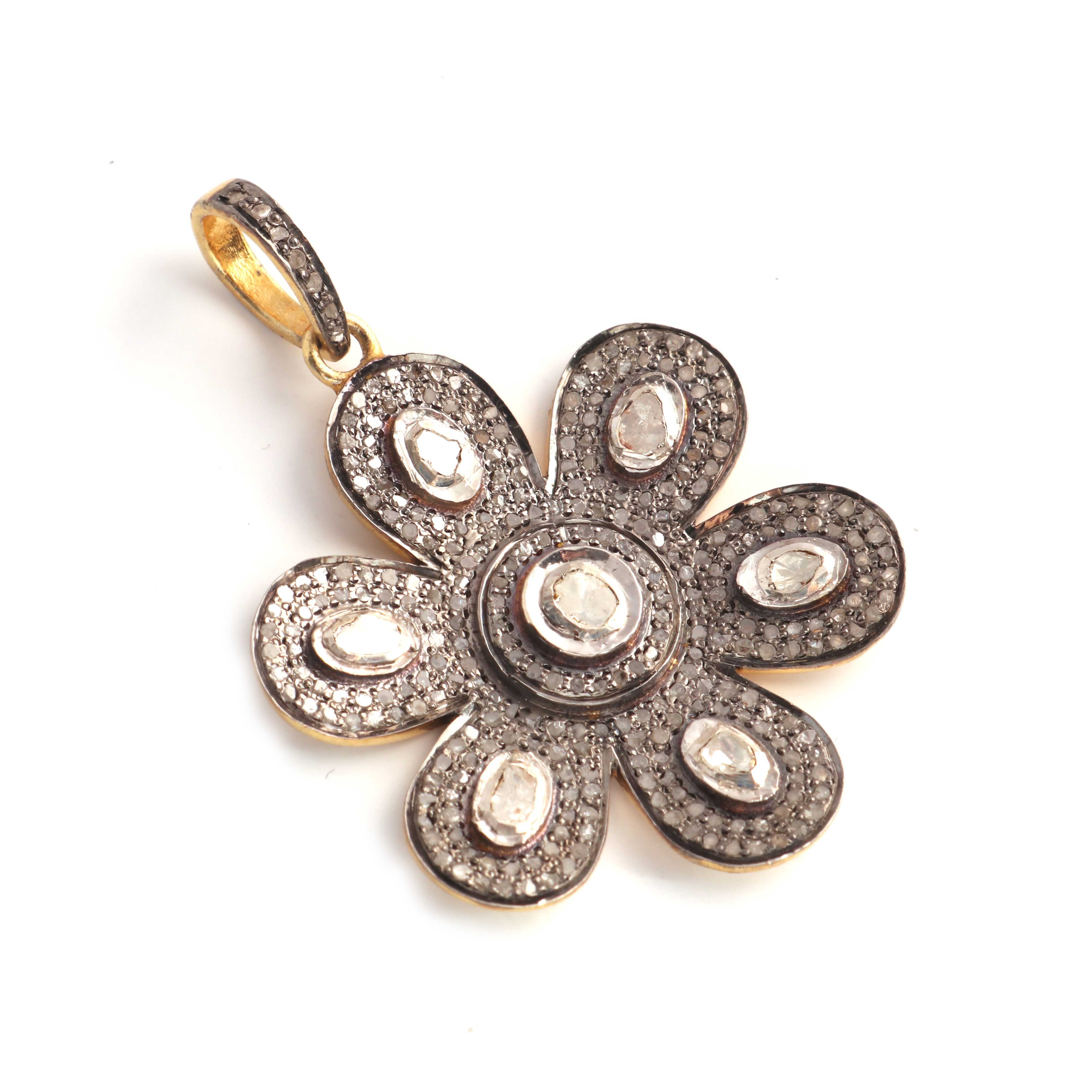 Listing is For One (1) Pc Pave Diamond With Rosecut Diamond Flower Pendant Over 925 Sterling Silver & Vermeil - Polki Flower Pendant. PD746