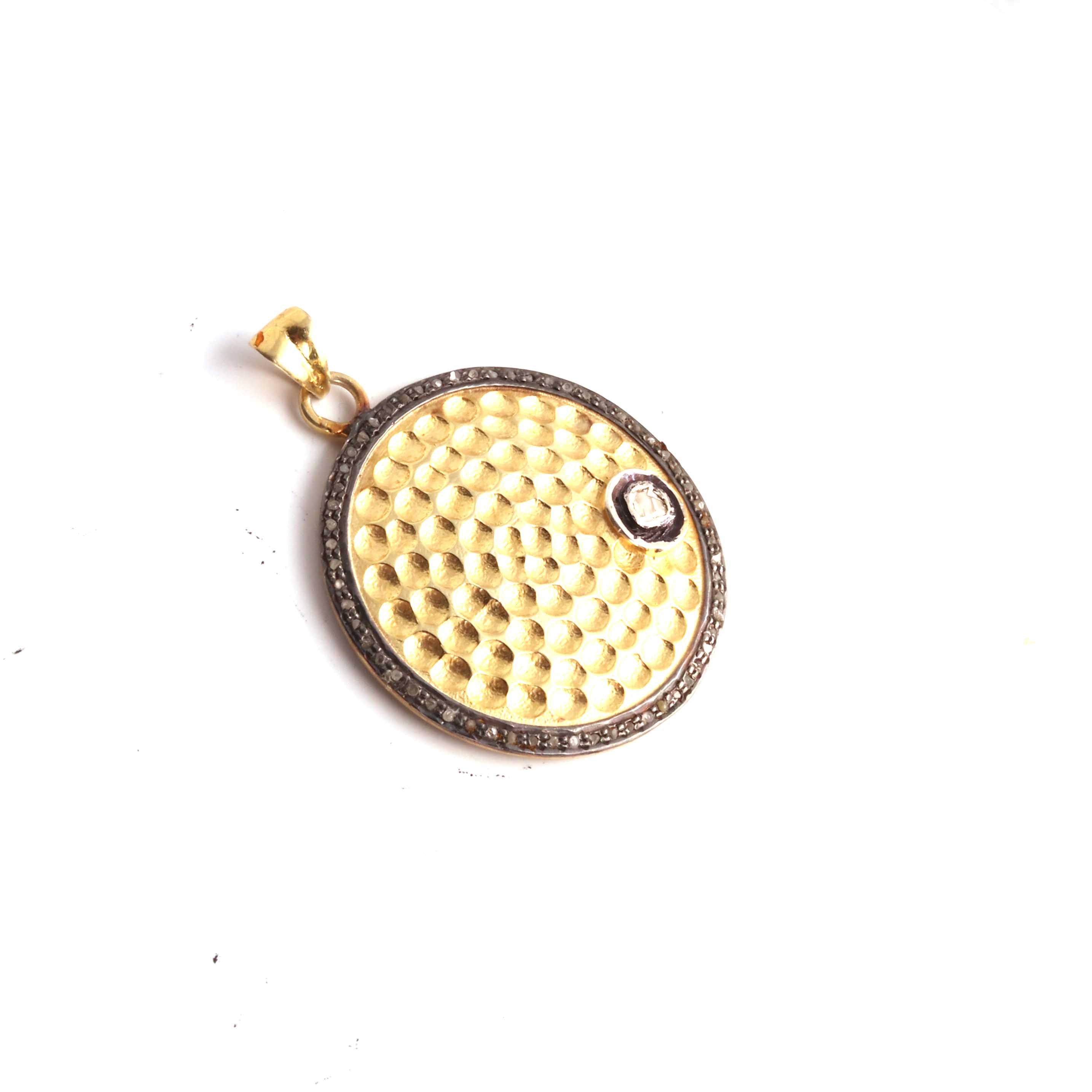 Listing is For One (1) Pc Pave Diamond With Rose cut Diamond Round Pendant - 925 Sterling Vermeil - Diamond Pendant PD1226